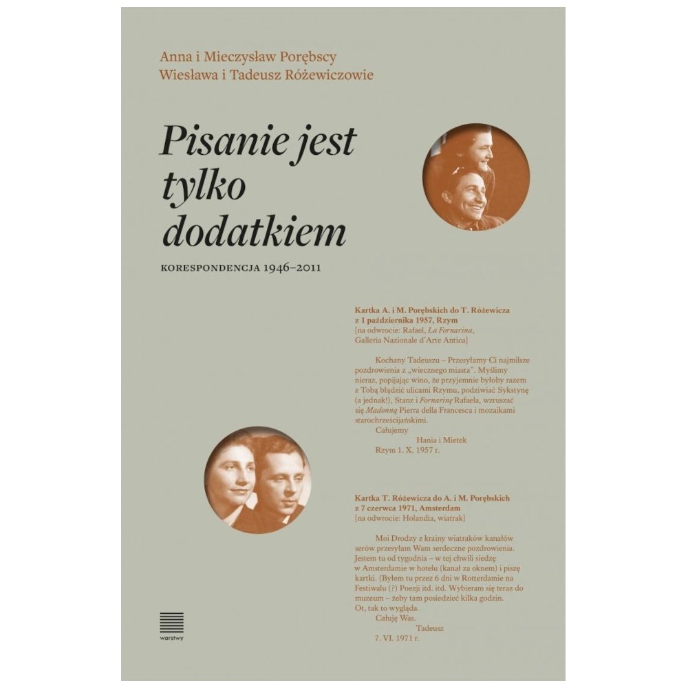 Książka "Pisanie jest tylko dodatkiem – korespondencja 1946-2011" przybliża czytelnikom dwie bardzo istotne osobowości literatury i kultury polskiej XX wieku. Z jednej strony mamy doskonale nam znaną postać Tadeusza Różewicza, jednego z najwybitniejszych i najczęściej tłumaczonych na języki obce polskiego pisarza, który obok Czesława Miłosza i Wisławy Szymborskiej postrzegany był przez lata jako główny polski pretendent do Nagrody Nobla w dziedzinie literatury. Z drugiej strony mamy Mieczysława Porębskiego, także pisarza, ale przede wszystkim szanowanego i docenianego krytyka sztuki, wykładowcę w Akademii Sztuk Pięknych w Warszawie, od 1970 profesora na Uniwersytecie Jagiellońskim, od 1974 kuratora w Muzeum Narodowym w Krakowie, w 2012, na kilka miesięcy przed śmiercią, uhonorowanego Nagrodą Literacką Gdynia za książkę "Spotkanie z Ablem". Zgromadzone listy są z jednej strony zapisem przyjaźni dwóch intelektualistów i ludzi kultury, ale też dialogiem dotyczącym sztuki, literatury i spraw społeczno-politycznych. Niosą one też ze sobą wartość czysto literacką, co dodatkowo wzmacniają załączane teksty poetyckie, rysunki, fotografie, wycinki prasowe, programy teatralne. "Zgodnie z tytułem książki – Pisanie jest tylko dodatkiem – najważniejsze słowa między przyjaciółmi padły zapewne nie w listach, a w bezpośrednich rozmowach "w cztery oczy", podczas prywatnych "sympozjonów", spacerów w Ustroniu, spotkań w Warszawie i "gdzieś w świecie" – w Wenecji czy Paryżu Zebrane tu listy są tylko echem wspólnych przeżyć, wspomnieniem lub zapowiedzią rozmowy, znakiem życia i sygnałem pamięci. Ale przecież są równocześnie autentycznym, bezcennym zapisem duchowych rozterek i zwątpień, wzruszającym świadectwem tęsknot i nadziei, złudzeń i zachwytów. A przede wszystkim niezwykłej duchowej więzi, braterskiej wspólnoty łączącej przyjaciół. "To nie jest ten list – który chciałem napisać – wyznaje Różewicz – ale jeśli pomyślisz, to będziesz wiedział o czym ten nienapisany list jest tym bardziej, że są to raczej uczucia niż myśli. Czujemy zapewne to samo, więc pisanie jest tylko dodatkiem" (Krystyna Czerni, fragment wstępu)