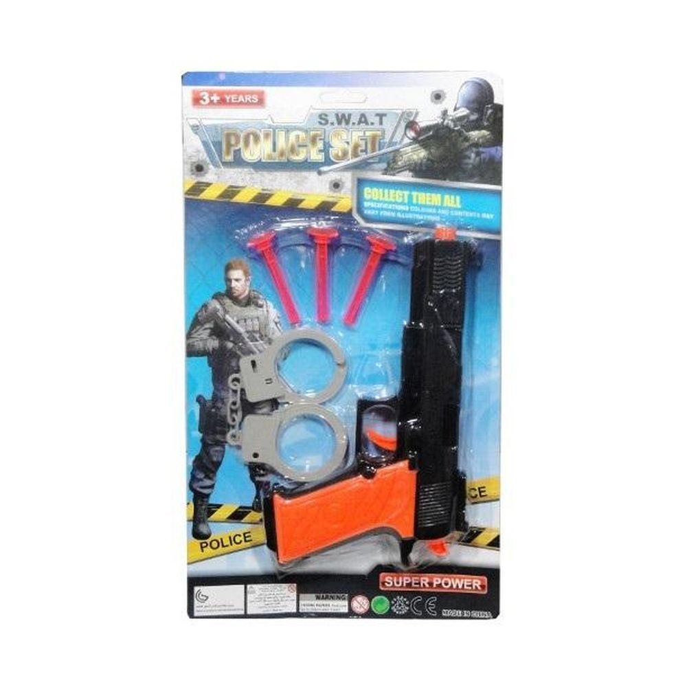 Zestaw pistolet na spłonkę wraz z 3 strzałkami oraz tarczą, która pomoże ćwiczyć celność u dzieci.