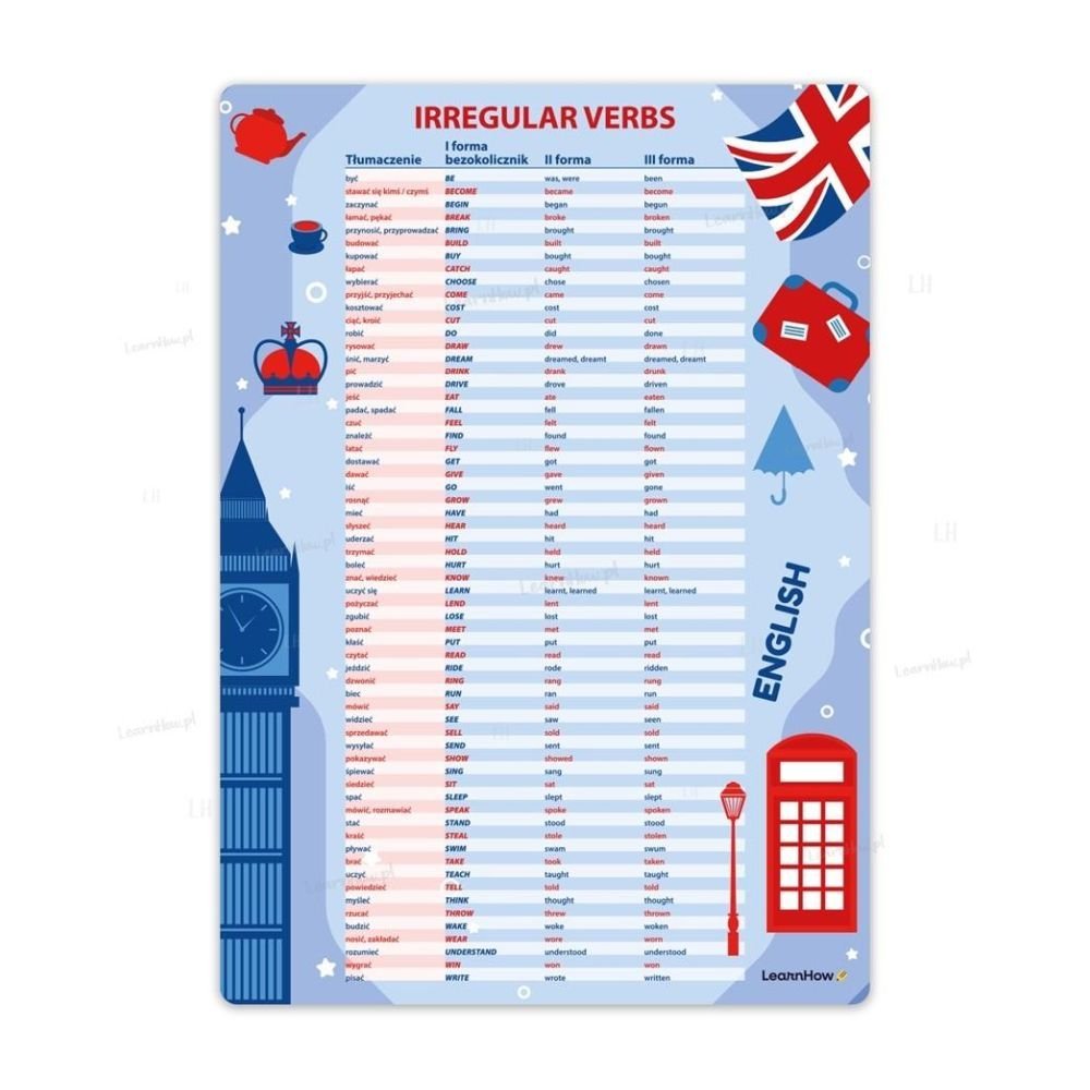 Kolorowy z czasownikami nieregularnymi to idealna pomoc przy nauce Angielskiego.