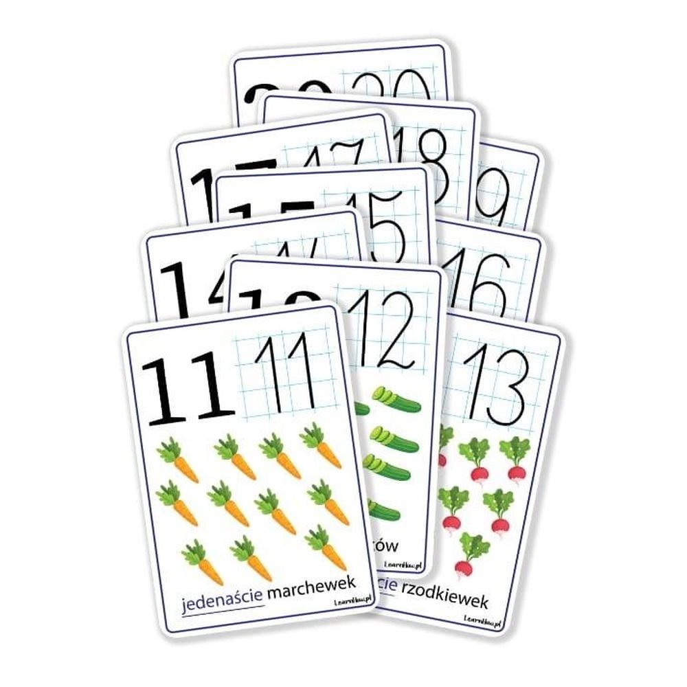 Plansze edukacyjne A5 – Cyfry 11-20 10 kart