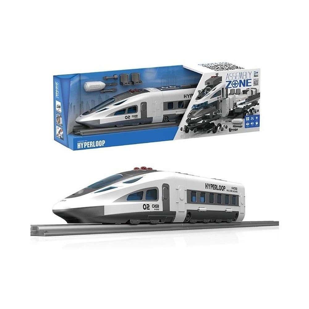 W zestawie: pociąg, śrubokręt z 3 końcówkami, 2 fotele, 2 elementy torów, Funkcje: pociąg można dowolnie skręcać i rozkręcać, otwierany wagon, koła z napędem frykcyjnym, efekty świetlne i dźwiękowe pociągu, Pozostałe informacje: dł.