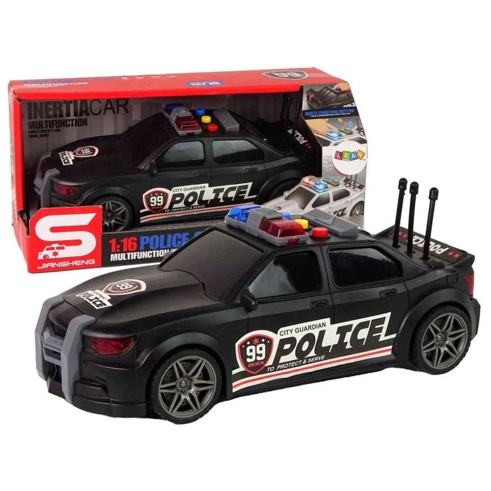 Auto Sportowe Policja 1:16 Czarny Dźwięk Jeśli twoje dziecko lubi muzykę a do tego sportowe auta, to właśnie mamy idealne połączenie. Sprawi mu to dużo frajdy i na pewno szybko nie znudzi. Zapraszamy do świata niezapomnianych przygód za kierownicą naszego niesamowitego samochodu na skalę 1:16, w czarnym kolorze, ozdobionego policyjnymi naklejkami! Kiedy złapiesz ten pojazd w ręce, poczujesz ekscytujący dreszczyk emocji, dzięki dźwiękowi odpalania silnika. Sygnały syreny policyjnej sprawi, że maluch przeniesie się w świat policyjnych akcji. Odgłosy szybkiej jazdy ułatwią wyobrażenie