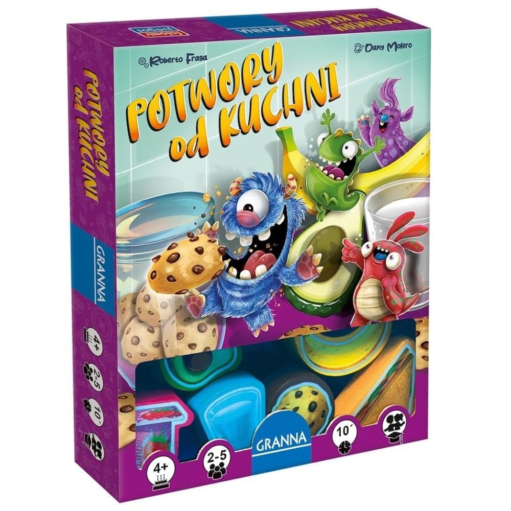 Pora na podwieczorek! Wygłodniałe stworki ruszają na poszukiwania smakołyków, czasem jednak trudno znaleźć najsmaczniejsze kąski. Poza tym konkurencja nie śpi, więc do dzieła! Potwory od kuchni to gra, w której liczą się spostrzegawczość, szybkość i refleks. Kto pierwszy zapełni brzuszek potworka?