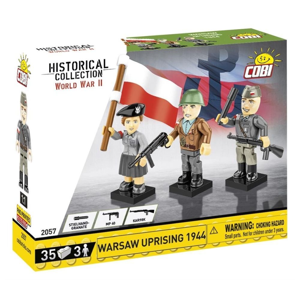 WARSAW UPRISING 1944 Historical Collection: WWII 35 klocków 3 figurki Grupa wiekowa 5+ Zestaw trzech figurek przedstawiający powstańców warszawskich z 1944 roku. Pośród figurek znajdziemy łączniczkę z polską flagą oraz żołnierzy Armii Krajowej w improwizowanych mundurach, których cechą charakterystyczną były biało-czerwone opaski na rękawach i polskie symbole na furażerkach i zdobycznych hełmach. Wszystkie figurki zawierają zupełnie nowe, bardzo atrakcyjne nadruki umundurowania i twarzy oraz podstawki do łatwiejszego eksponowania. Do każdej figurki dołączone są akcesoria takie jak pistolet maszynowy MP 40, granat trzonkowy czy karabin Mauser. Dzięki różnorodnym zestawom z figurkami szybko zbudujesz swoją klockową armię! Figurki i akcesoria możesz wykorzystać przy budowie scenek i dioram. Sprawdź również inne zestawy z figurkami! Powstanie Warszawskie wybuchło 1 sierpnia 1944 roku o godzinie 17:00 (godzina "W") i trwało aż do 3 października. Było zbrojnym wystąpieniem polskiego ruchu oporu, głównie Armii Krajowej, przeciwko okupującym Warszawę wojskom niemieckim. Celem powstania było wyzwolenie stolicy przed nadejściem Armii Czerwonej, aby zapewnić suwerenność Polski po wojnie. Mimo początkowych sukcesów, powstańcy nie zdołali utrzymać swoich pozycji w obliczu przeważających sił niemieckich i braku dostatecznej pomocy z zewnątrz. Po 63 dniach niezwykle wyniszczających i zaciętych walk powstanie zostało stłumione. Zginęło około 16 tysięcy powstańców i około 150-200 tysięcy cywilów, a miasto zostało niemal doszczętnie zniszczone. Do dzisiaj Powstanie Warszawskie jest symbolem ogromnej odwagi i poświęcenia w imię wyższych wartości. 35 wysokiej jakości elementów, wyprodukowane w UE przez firmę z ponad 20-letnią tradycją, spełniają normy bezpieczeństwa dotyczące produktów dla dzieci, w pełni kompatybilne z innymi markami klocków konstrukcyjnych, klocki z nadrukami nie odkształcają się i nie bledną w czasie zabawy czy pod wpływem temperatury, 3 figurki z akcesoriami