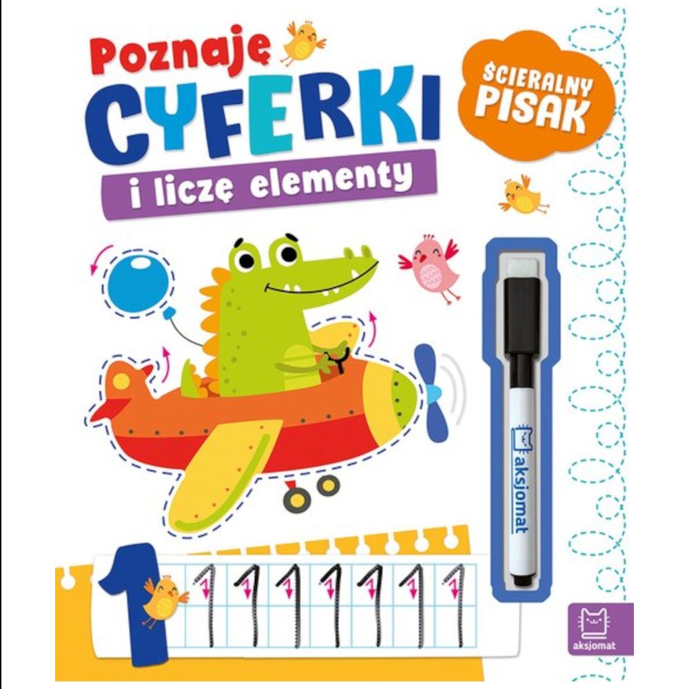 "Poznaję cyferki i liczę elementy" to książka wielokrotnego użytku, wydana na zmywalnym papierze, z załączonym ścieralnym pisakiem. Dzieci znajdą tu szlaczki i ćwiczenia zachęcające do liczenia oraz proste działania. Książka ze ścieralnym pisakiem w niewymuszony sposób skłania dzieci do wielokrotnych powtórzeń, co sprawia, że bez wysiłku uczą się liczyć i rozwijają sprawność manualną.