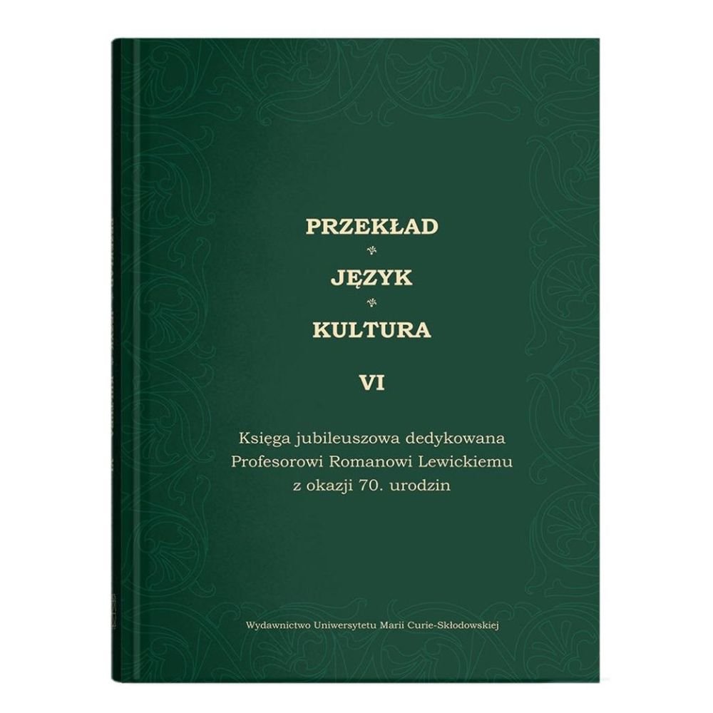 Do rąk Pana Profesora oraz Czytelników oddajemy księgę jubileuszową opracowaną z okazji Jego 70. Urodzin. Tom zawiera 22 artykuły z zakresu przekładoznawstwa i językoznawstwa. Ich Autorki i Autorzy w ten właśnie sposób chcieli uczcić Jubileusz Romana Lewickiego oraz przekazać podziękowanie za tak istotny wkład w budowanie w Polsce podstaw tej dyscypliny naukowej. Zaprezentowane badania dotyczą obszaru przekładu literackiego, zagadnień leksykologii i leksykografii przekładowej, problemu dyskursów w kontekście tłumaczeń, przekładu tekstów dawnych, szeroko pojętych aspektów językoznawczych widzianych przez pryzmat tłumaczenia oraz metajęzykowego spojrzenia na przekładoznawstwo. Tom recenzowali Profesorowie Anna Warda, Jerzy Brzozowski, Katarzyna Lukas i Michał Garcarz. Tytuł księgi Przekład Język Kultura nawiązuje do serii założonej przez Profesora, jest to jej tom VI.