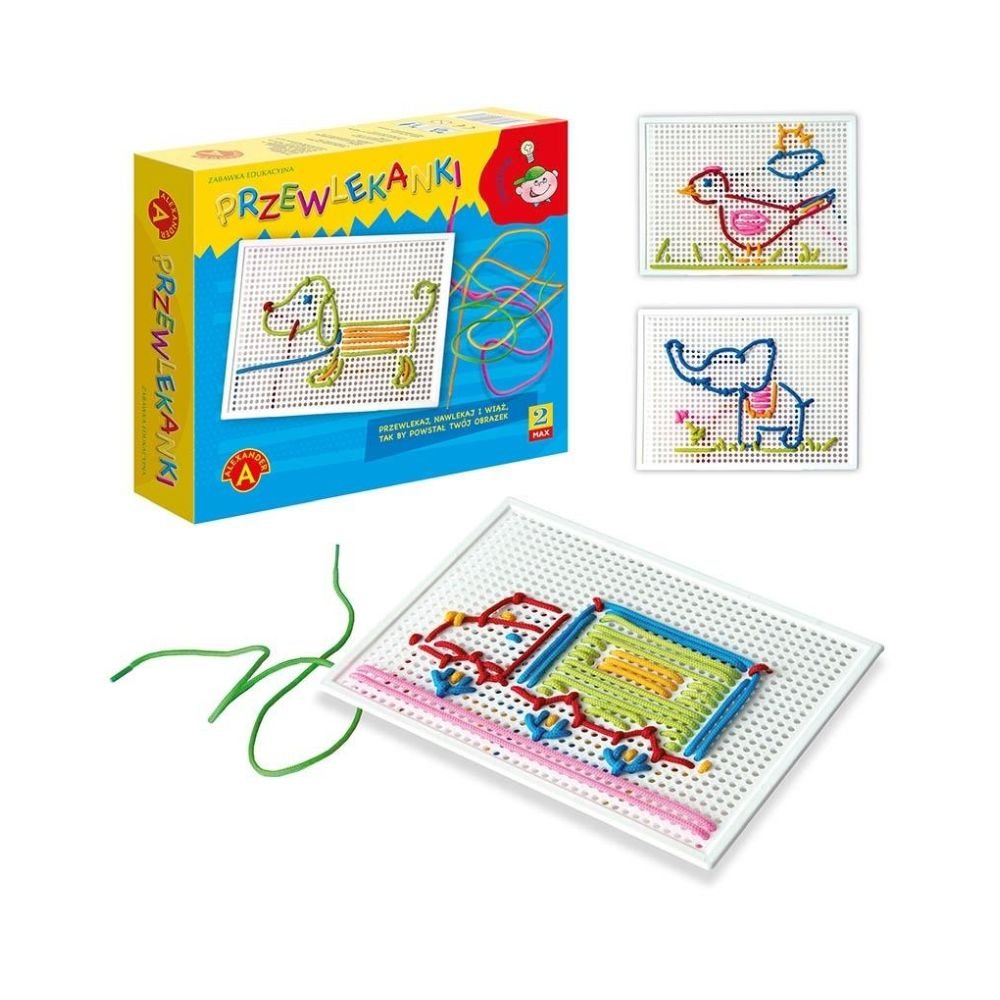To zabawka, która polega na przewlekaniu kolorowych linek przez ażurową planszę. Linki należy przewlekać w taki sposób, by udało się stworzyć ciekawy obrazek. Przewlekanki to świetny trening cierpliwości, zręczności oraz precyzji.