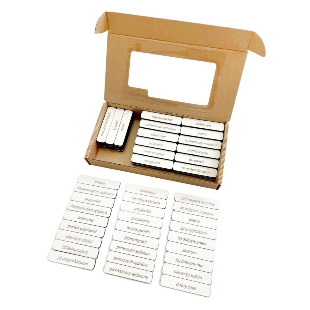 Produkt zawiera odmienione przez przypadki wyrazy (w liczbie pojedynczej i mnogiej), łącznie 126 sztuk.