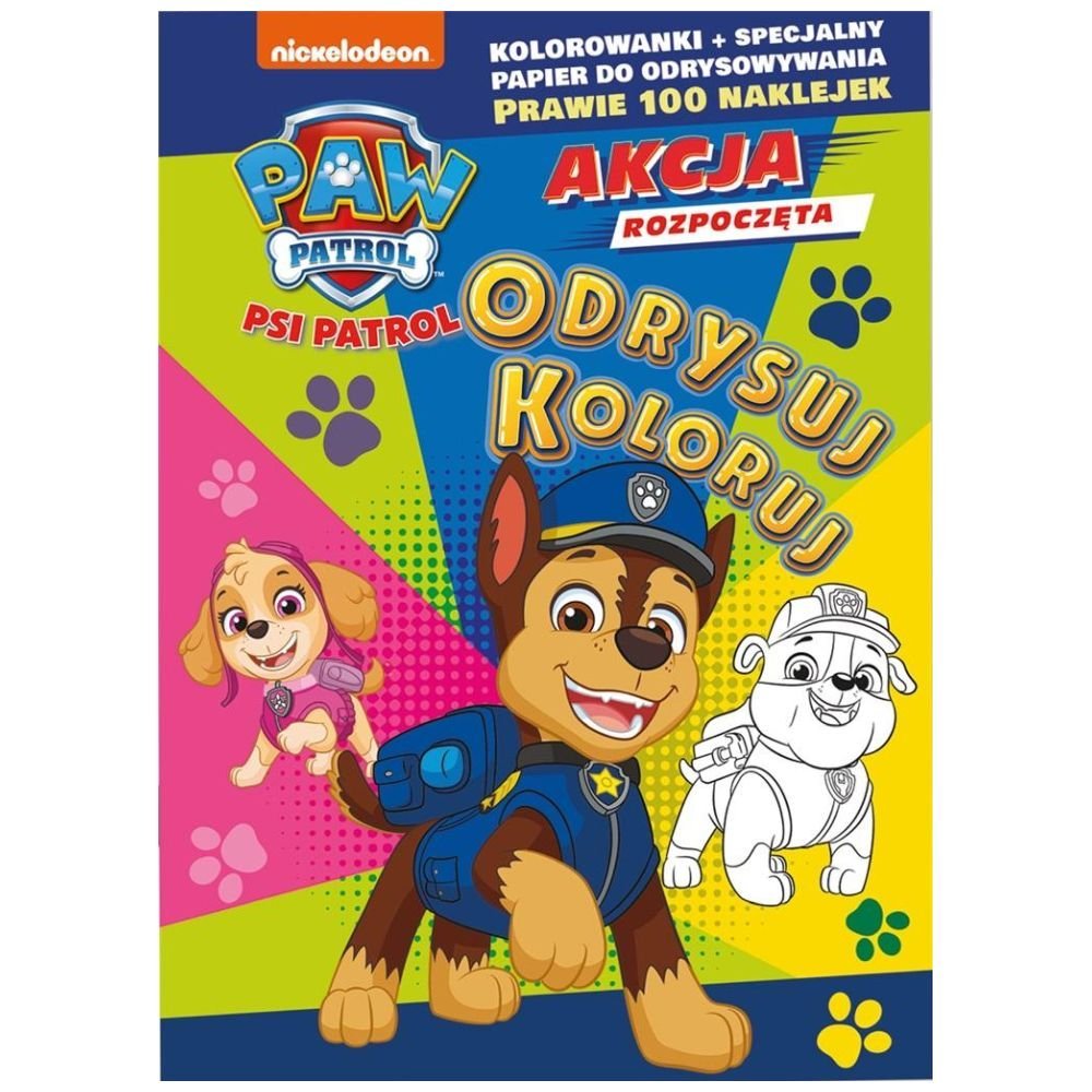 Książka Psi Patrol. Odrysuj koloruj to idealna propozycja dla fanów dzielnej ekipy. Publikacja zawiera kolorowanki oraz półtransparentne strony do odrysowywania. Pomagają one ćwiczyć koncentrację uwagi, precyzję ruchów oraz sprawność manualną. Kreatywna zabawa i nauka w jednym! W środku na małego czytelnika czeka również arkusz kolorowych naklejek!