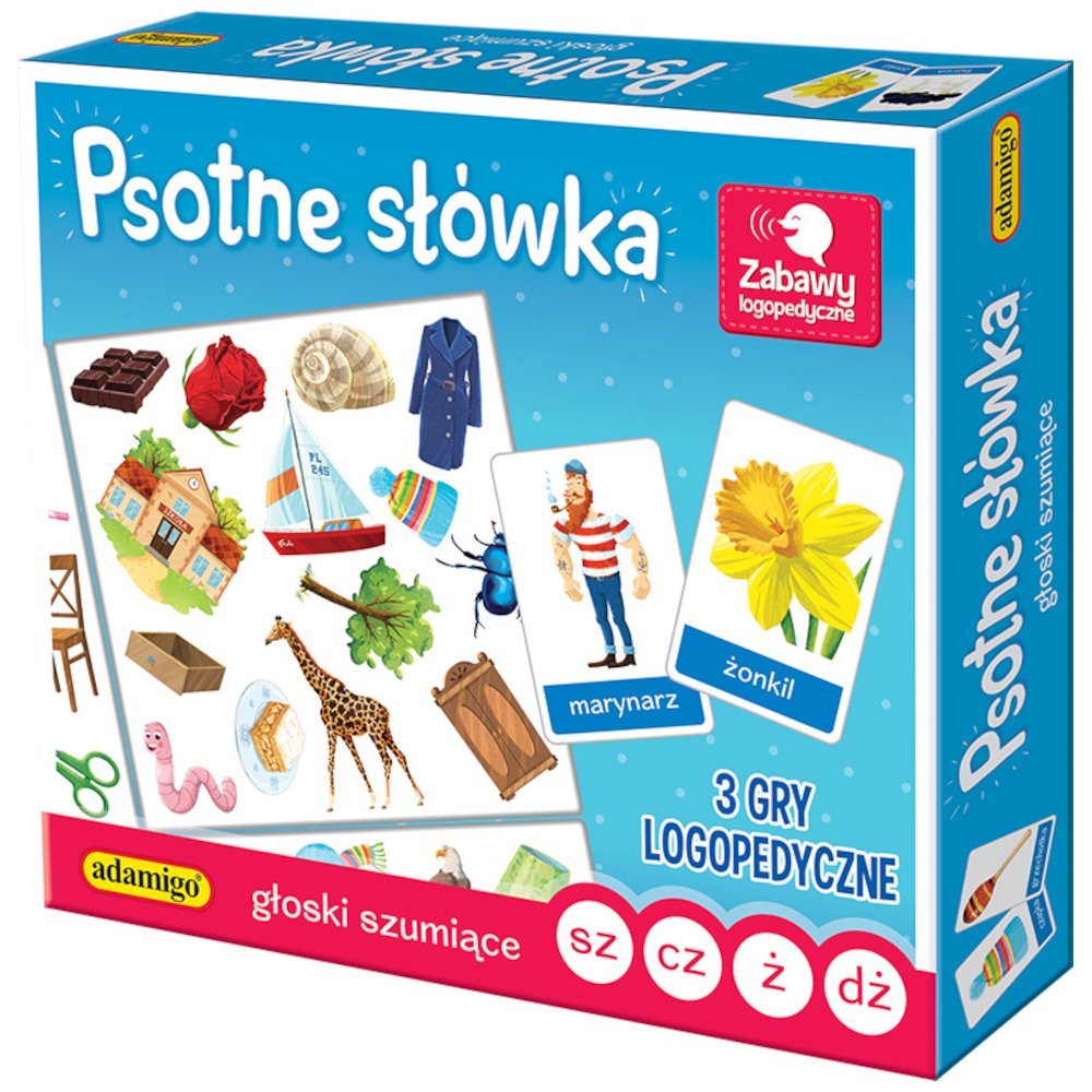 Seria gier "Psotne Słówka" przeznaczona jest dla wszystkich, którzy chcą doskonalić prawidłową wymowę trudnych głosek. Psotne polskie słowa często sprawiają najmłodszym wiele trudności. Dzięki grze ćwiczenia logopedyczne staną się przyjemnością. Każde dziecko wie już o tym, Słówka mogą robić psoty, Plączą język trudne słowa, Katastrofa więc gotowa. Jednak na to jest już rada, Ćwiczyć język wciąż wypada, Zagraj w grę dla przyjemności, A pokonasz te trudności!