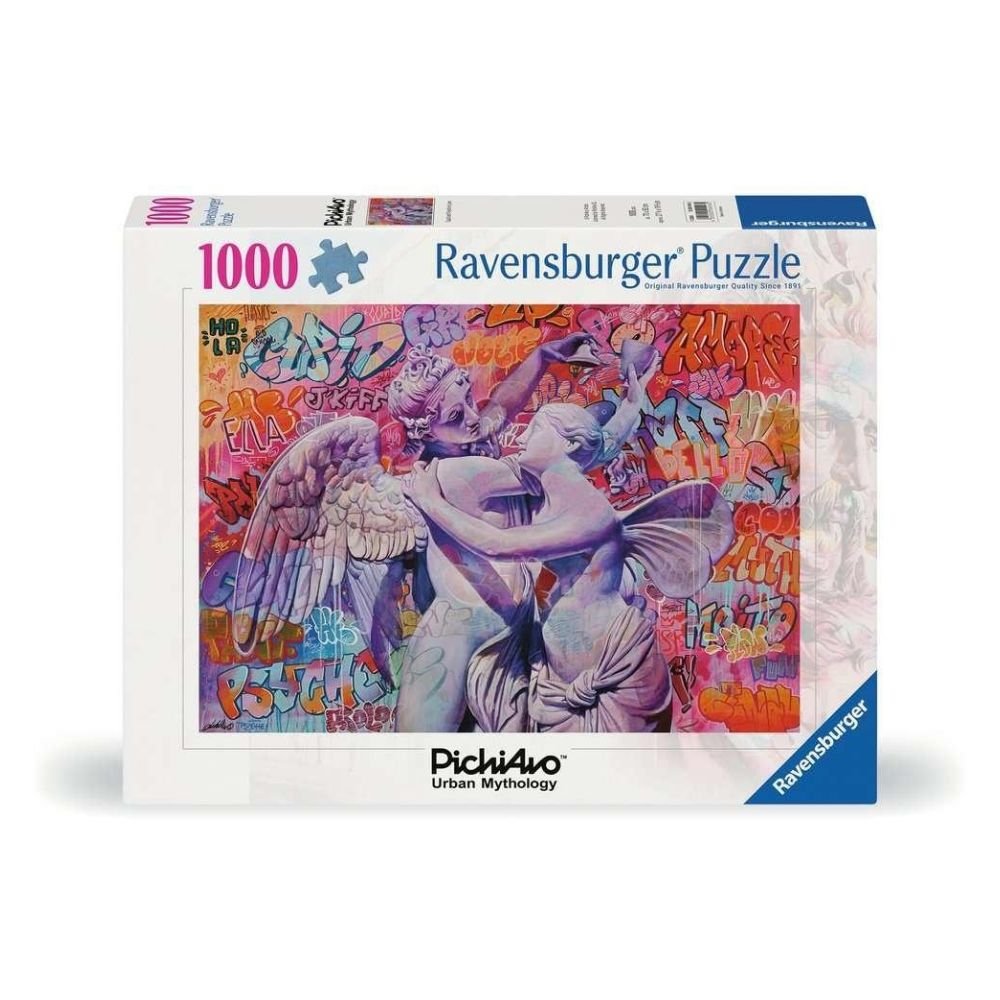 Romans unosi się w powietrzu w nowoczesnym wydaniu! Fuzja surowego graffiti eksplodującego kolorami kontrastuje z obrazami eleganckiej, klasycznej rzeźby charakterystycznym stylem utalentowanego duetu artystów ulicznych znanego jako PichiAvo! Ponieważ Kupidyn i Psyche musieli pokonać wiele przeszkód, aby być razem, są trwałym symbolem wiecznej miłości. Nic dziwnego, że ich wizerunki cieszą się tak dużą popularnością na kartkach walentynkowych. Idealna łamigłówka dla Twojej prawdziwej miłości lub miła niespodzianka dla siebie, o każdej porze roku!