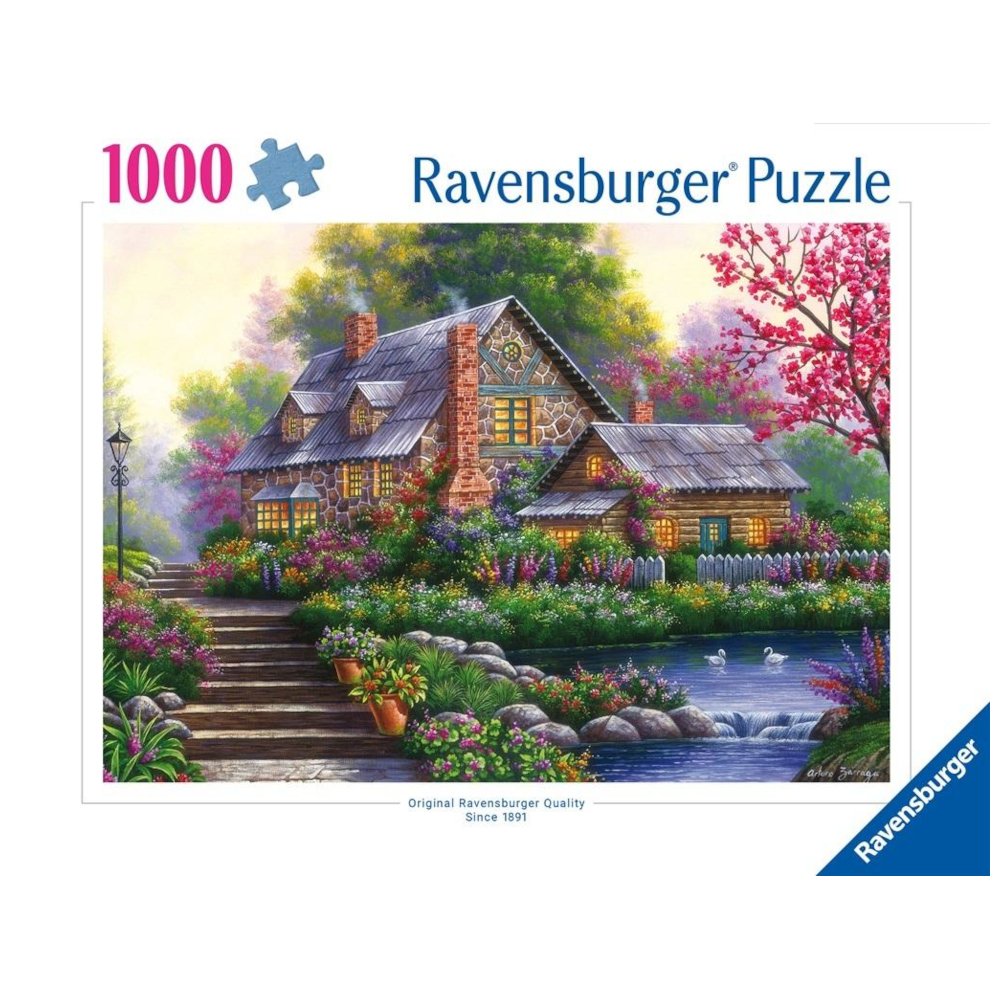 Puzzle 1000 elementów Ravensburger z motywem: romantyczny domek na wsi