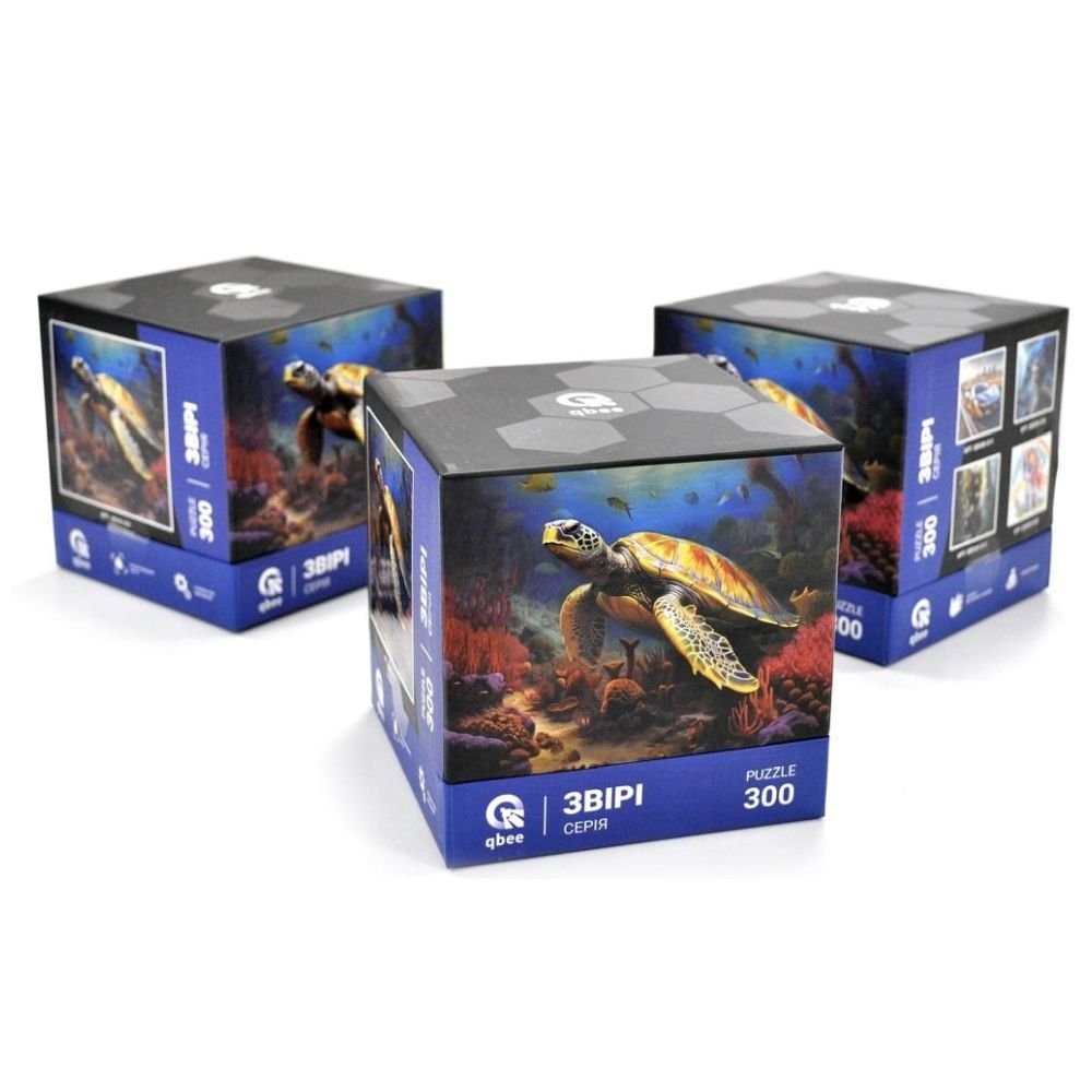 Puzzle – 300 wiązów. Seria Zwierzęta – "Żółw i ocean" w korze, wymiar 13,5*13,5*13,5 cm, rozmiar puzzli 40*40 cm