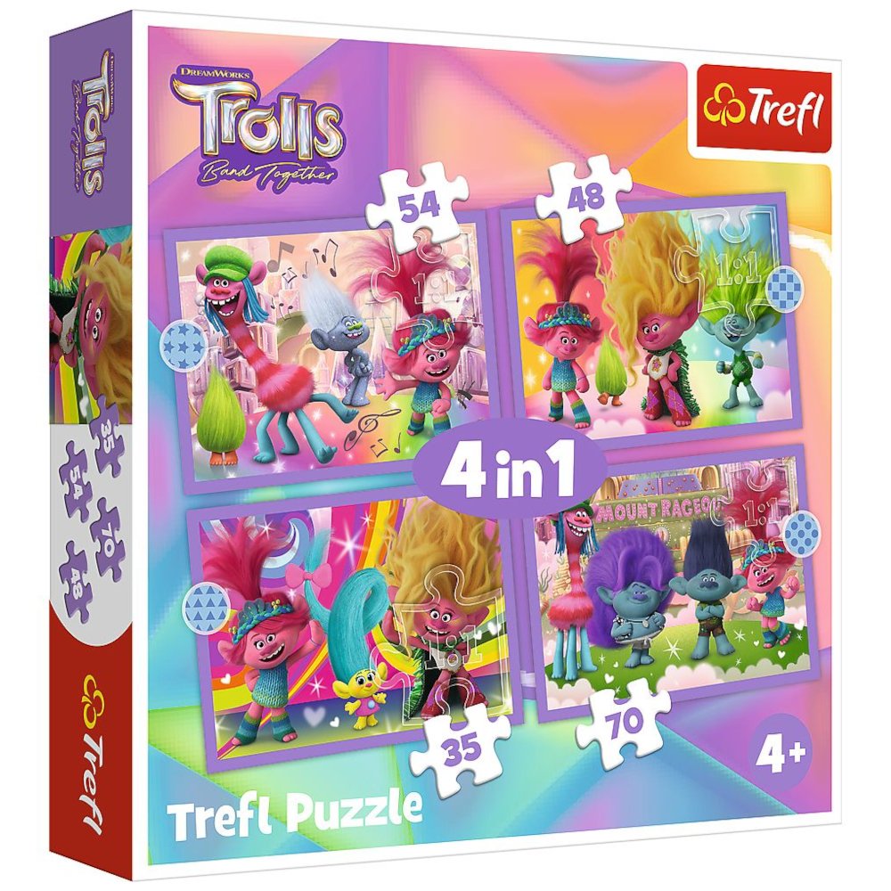 Puzzle 4w1 Przygody kolorowych Trolli TREFL