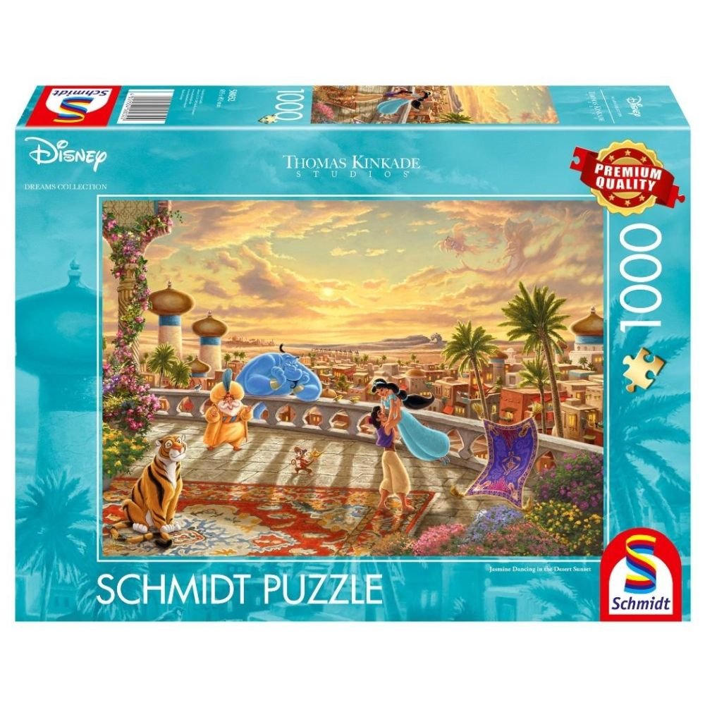 Puzzle marki Schmidt Spiele ze znakiem "Premium Quality" to produkty wprowadzające zupełnie nową jakość do tego asortymentu. Dzięki specjalnie zaprojektowanej tekturze wyróżnia je przede wszystkim perfekcyjna spójność, a wyjątkowe i niespotykane grafiki zwiększają ich atrakcyjność. Puzzle pokryte są matowym lakierem, który nie odbija światła. Dzięki wykorzystaniu w procesie produkcji niezwykle cienkich wykrojników, puzzle "Premium Quality" są idealnie do siebie dopasowane. Jednak najbardziej imponującą cechą nowych puzzli Schmidt Spiele ze znakiem "Premium Quality" jest to, że po ułożeniu można je chwycić, podnieść i przenieść bez ryzyka, że się rozpadną! Mówi się, że Kinkade maluje światłem. Odgrywa ono kluczową rolę w jego impresjonistycznych obrazach: prześwituje przez drzewa, odbija się w czystej wodzie potoku, zagląda przez okna domu w ciemną noc. Prawdziwa poezja chwili. Nic dziwnego że Thomas Kinkade jest jednym z najbardziej popularnych artystów naszych czasów. I dla wszystkich tych, którzy nie mogą sobie pozwolić na oryginały, przedstawiamy jego prace w postaci puzzli. Żeby małe elementy mogły zapewnić rozrywkę na długo, muszą być wykonane z wysokiej jakości materiałów. Puzzle marki Schmidt Spiele spełniają ten warunek i dlatego określane są mianem "Premium Quality". Systematyczne kontrole, najwyższej jakości surowce, innowacyjne metody produkcji i wyszukane motywy graficzne, to to co je wyróżnia.