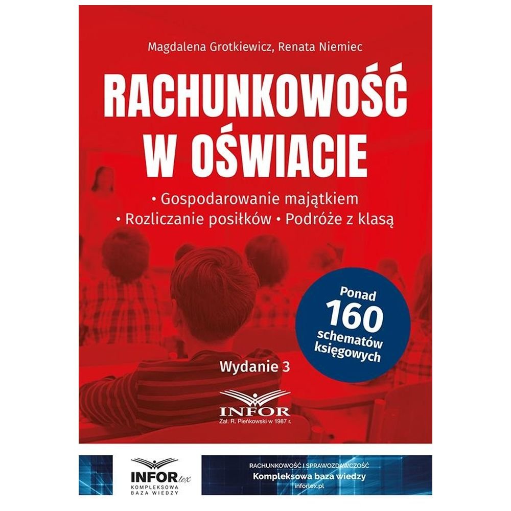 Jednostki oświatowe należące do sektora finansów publicznych są zobowiązane do prowadzenia rachunkowości na zasadach określonych w ustawie z 29 września 1994 r. o rachunkowości, z uwzględnieniem szczególnych uregulowań wynikających z ich przynależności do sektora finansów publicznych – zawartych w ustawie z 27 sierpnia 2009 r. o finansach publicznych i wydanych na jej podstawie aktów wykonawczych. Przepisy te zobowiązują jednostki oświatowe do posiadania właściwej dokumentacji regulującej gospodarkę finansową jednostki, opisującej zasady rachunkowości obowiązujące w jednostce, w tym zasady prowadzenia ksiąg rachunkowych. Podstawowym aktem wykonawczym, który determinuje zasady ewidencji księgowej w jednostkach oświatowych, jest rozporządzenie Ministra Finansów z 13 września 2017 r. w sprawie rachunkowości oraz planów kont dla budżetu państwa, budżetów jednostek samorządu terytorialnego, jednostek budżetowych, samorządowych zakładów budżetowych, państwowych funduszy celowych oraz państwowych jednostek budżetowych mających siedzibę poza granicami Rzeczypospolitej Polskiej. Akt ten nakłada na jednostki oświatowe obowiązek stosowania zakładowego planu kont stanowiącego załącznik nr 3 do rozporządzenia, ze szczególnym uwzględnieniem specyfiki tych jednostek. W publikacji "Rachunkowość w oświacie" przedstawiono kwestie dotyczące: gospodarki finansowej jednostek oświatowych – m. in. planu finansowego, wydzielonego rachunku dochodów, rachunkowości – m. in. szczególnych zasad rachunkowości dla tych jednostek, zasad prowadzenia ksiąg rachunkowych, ewidencji typowych zdarzeń gospodarczych w księgach rachunkowych. Całość dopełnia szczegółowa analiza sprawozdania finansowego, zawierająca opis podstawowych zasad jego sporządzania, a także tabelaryczne zestawienia obrazujące: przeksięgowanie przychodów i kosztów na dzień 31 grudnia (zarówno dla jednostek prowadzących ewidencję tylko w zespole 4, jak i w zespołach 4 i 5), powiązanie pozycji rachunku zysków i strat z kontami ewidencji księgowej, powiązanie kont kosztowych z paragrafami klasyfikacji budżetowej dla szkoły lub placówki oświatowej (z uwzględnieniem paragrafów stosowanych w związku z pomocą obywatelom Ukrainy – m. in. 435, 437, 484, 485 oraz 486), powiązanie niektórych pozycji zestawienia zmian w funduszu szkoły lub placówki oświatowej z kontami księgowymi, powiązanie poszczególnych pozycji bilansu szkoły lub placówki oświatowej z saldami kont księgowych. Ponadto w publikacji "Rachunkowość w oświacie" poruszono problematykę najmu powierzchni oraz opłat za posiłki. Przystępnie wyjaśniono regulacje obowiązujące w zakresie zorganizowania posiłku w szkole (z uwzględnieniem obowiązków dyrektora szkoły), jego rozliczania oraz pobierania opłat od rodziców. Szeroko omówione też zostały zasady naliczania podatku od towarów i usług w przypadku sprzedaży posiłków nauczycielom oraz pracownikom niepedagogicznym. Opracowanie zawiera ponad 160 przykładów ewidencji księgowej typowych operacji gospodarczych występujących w jednostce oraz przydatne wzory dokumentów. Książka jest najbardziej aktualną na rynku pozycją omawiającą różnego rodzaju aspekty finansowe w oświacie. Poruszono w niej także tematykę zakresu z najnowszego przedsięwzięcia ogłoszonego przez Ministerstwo Edukacji Narodowej – "Podróże z klasą".