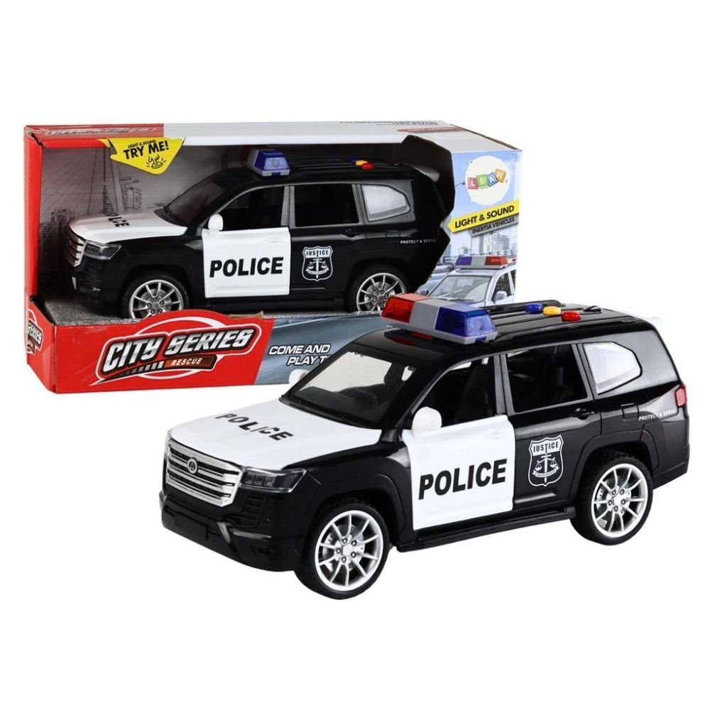 Radiowóz Policyjny Auto Policja Dźwięk Światła Otwierane Drzwi 1:14 To dynamiczne i interaktywne auto policyjne, które przyciąga uwagę najmłodszych entuzjastów służb mundurowych. Jego wyrazisty design w kolorze biało-czarnym, z wyraźnym napisem "Policja", nadaje mu autentycznego charakteru. Pojazd został zaprojektowany z myślą o pełnej zabawie, oferując różnorodne funkcje. Na dachu auta umieszczone są trzy przyciski, z których każdy generuje charakterystyczne efekty dźwiękowe, takie jak syreny, klakson czy inne dźwięki policyjne. Dodatkowo, unikalną cechą tej zabawki są lampy policyjne umieszczone na dachu, emitujące intensywne światło w kolorach czerwonym i niebieskim. Te świetliste efekty włączają się synchronicznie z aktywowanymi dźwiękami, co dodaje realizmu i atrakcyjności do zabawy. Ponadto, auto zostało wyposażone w otwierane drzwi z przodu, co umożliwia dzieciom łatwy dostęp do wnętrza pojazdu. Nie tylko drzwi są interaktywne – także maska oraz bagażnik otwierają się, co pozwala na dodatkowe elementy zabawy i dodawanie przedmiotów do wewnętrznej przestrzeni auta. Duże, gumowe koła sprawiają, że pojazd porusza się z łatwością po różnych powierzchniach, dodając elementy ruchu do kreatywnej zabawy. Ta interaktywna zabawka nie tylko dostarcza radości i rozrywki, ale również wspomaga rozwój zdolności manualnych i sensorycznych dziecka, rozwijając jednocześnie wyobraźnię poprzez symulację rzeczywistych sytuacji z udziałem pojazdów policyjnych. Wymiary pojazdu: 24 cm x 11 cm x 9 cm Wymiary opakowania: 29 cm x 14 cm x 12 cm Posiada certyfikat CE, ponadto jest zgodny z normą EN71. Zabawka przeznaczona jest dla dzieci powyżej 3 roku życia.