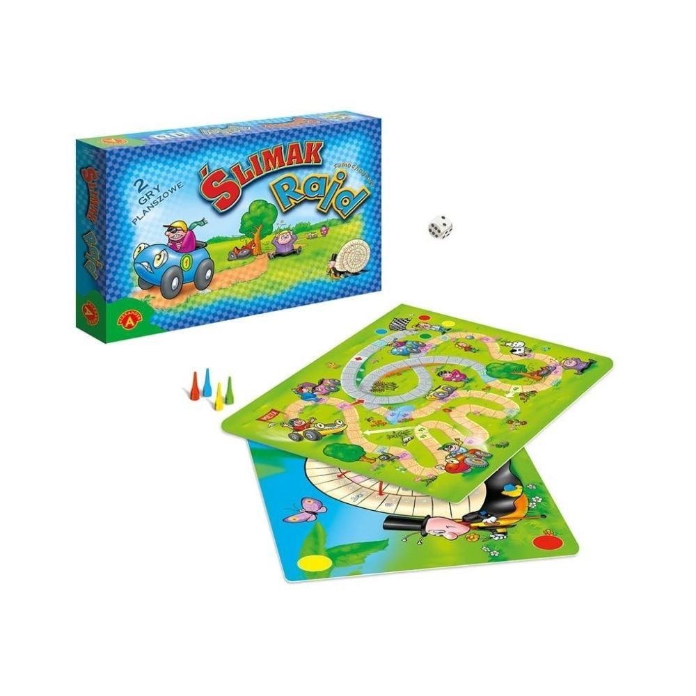 Dwie emocjonujące gry typu wyścig w których gracze próbują jak najszybciej dotrzeć do mety. Liczba oczek wyrzuconych na kostce wskazuje o ile pól należy przesunąć pionki po torze. W trakcie rajdu po planszy każdego z graczy będą spotykały miłe lub przykre niespodzianki, kary i nagrody. Kolorowe plansze oraz proste reguły obu gier są gwarancją dobrej zabawy – zwłaszcza dla najmłodszych.