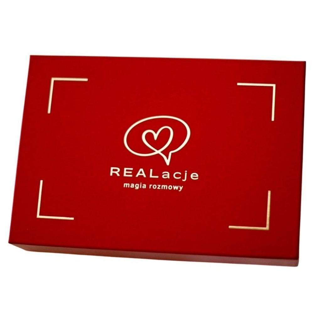 Zestaw kart dla par – idealny na prezent "REALacje" to unikalny, wysokiej jakości zestaw kart stworzony z myślą o Tobie i Twoim partnerze, mający na celu umocnienie Waszej relacji poprzez angażujące rozmowy na tematy związane z różnymi obszarami życia i związku.