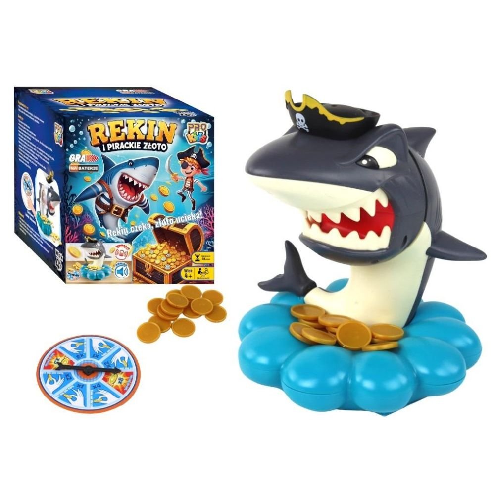 Gra "Rekin Pirackie Złoto" to dynamiczna gra rodzinna, która dostarcza mnóstwo śmiechu emocji. Gracze wcielają się rolę piratów, próbując zdobyć złote monety ukryte pod rekiniem. Uwaga! Rekin może zaatakować każdej chwili, co dodaje elementu niespodzianki adrenaliny. Gra sprzyja rozwijaniu refleksu koordynacji ruchowej, jej proste zasady czynią ją odpowiednią nawet dla najmłodszych graczy.