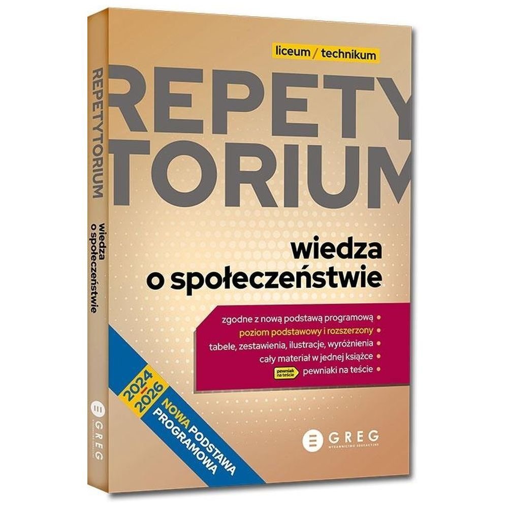 Wydawnictwo GREG we współpracy z najlepszymi nauczycielami przygotowało najnowsze wydanie Repetytorium – Wiedza o Społeczeństwie – książki, o którą bardzo często pytają uczniowie, maturzyści, a także nauczyciele!