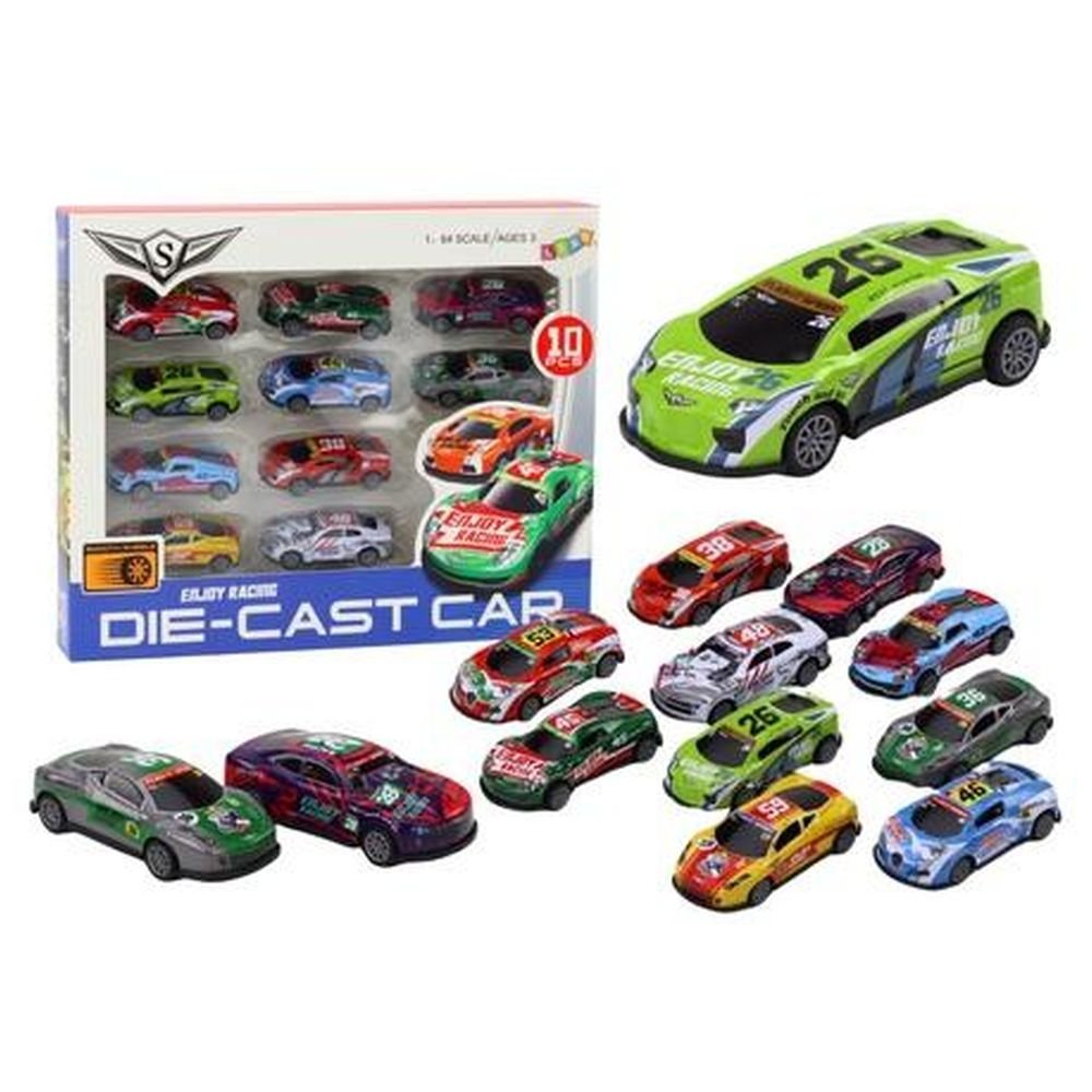 Zestaw Samochodzików Resoraki Autka Sportowe Wyścigowe 1:64 10 szt. Zestaw resoraków to idealna zabawka dla małych miłośników motoryzacji i wyścigów. W skali 1:64, każdy z 10 pojazdów prezentuje się jak prawdziwy bolid wyścigowy, gotowy do emocjonującej jazdy po torze lub w dowolnym miejscu. Każdy pojazd w zestawie posiada unikalną grafikę oraz numer, co dodaje im indywidualnego charakteru i umożliwia dzieciom organizowanie własnych wyścigów oraz zabaw w opowieści z udziałem poszczególnych samochodów. Autka są wykonane w stylu sportowym, co nadaje im dynamicznego wyglądu i sprawia, że wydają się gotowe do pokonania każdej trasy z maksymalną prędkością. Dzięki starannemu wykonaniu i dbałości o detale, dzieci mogą wcielić się w rolę kierowcy wyścigowego i rozpocząć emocjonujące zawody na swoim własnym torze lub w kreatywnych scenkach zabawowych. Największą atrakcją autek z tego zestawu jest ich zdolność do samodzielnego poruszania się po naciągnięciu. Po prostu naciągnij pojazd, wypuść go i zobacz, jak z impetem rusza do przodu, dostarczając dzieciom dodatkowej frajdy i akcji podczas zabawy. Zestaw resoraków 10 sztuk to nie tylko świetna zabawa, ale również doskonała okazja do rozwijania wyobraźni, kreatywności i umiejętności manipulacji dla najmłodszych pasjonatów motoryzacji. Wymiary pojazdu: 8 cm x 3,5 cm x 2 cm Wymiary opakowania: 32 cm x 26 cm x 4 cm Zabawka przeznaczona jest dla dzieci powyżej 3 roku życia. Zestaw posiada certyfikat CE i jest zgodny z normą EN 71.