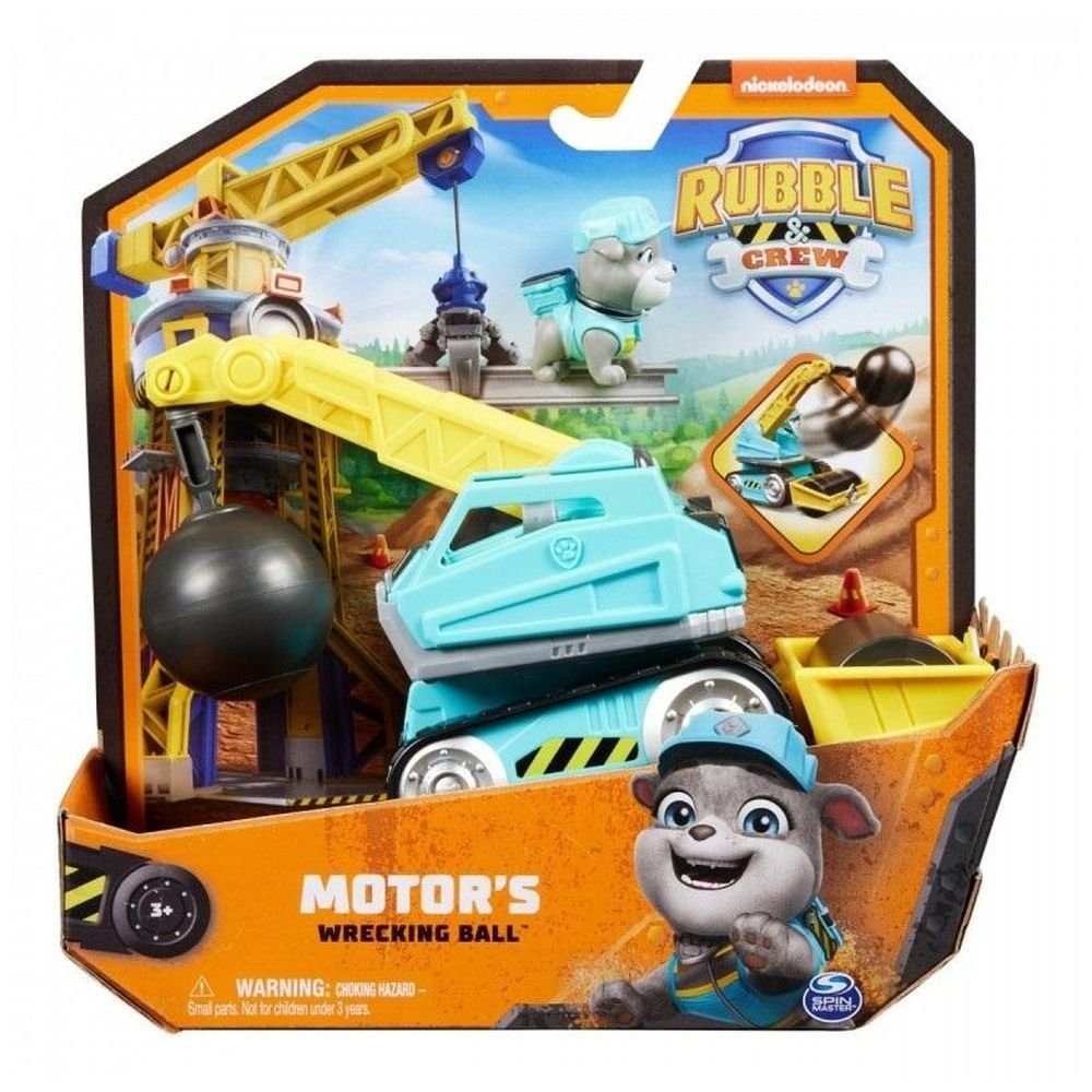 Motor robi bum! w swojej ciężarówce! Rodzice i dzieci mogą połączyć siły ze swoim ulubionym szczeniakiem, Motorem, aby odtworzyć sceny z serialu i bawić się w budowanie i burzenie! Pojazd posiada ruchome części i wyposażony jest w ramię dźwigu z kulą wyburzeniową i walcem drogowym. Aby zabawa była jeszcze bardziej ekscytująca, zbierz wszystkie zabawki z serii Rubble i jego Ekipa, pojazdy budowlane, figurki i pluszaki, aby tworzyć niekończące się przygody podczas zabawy!