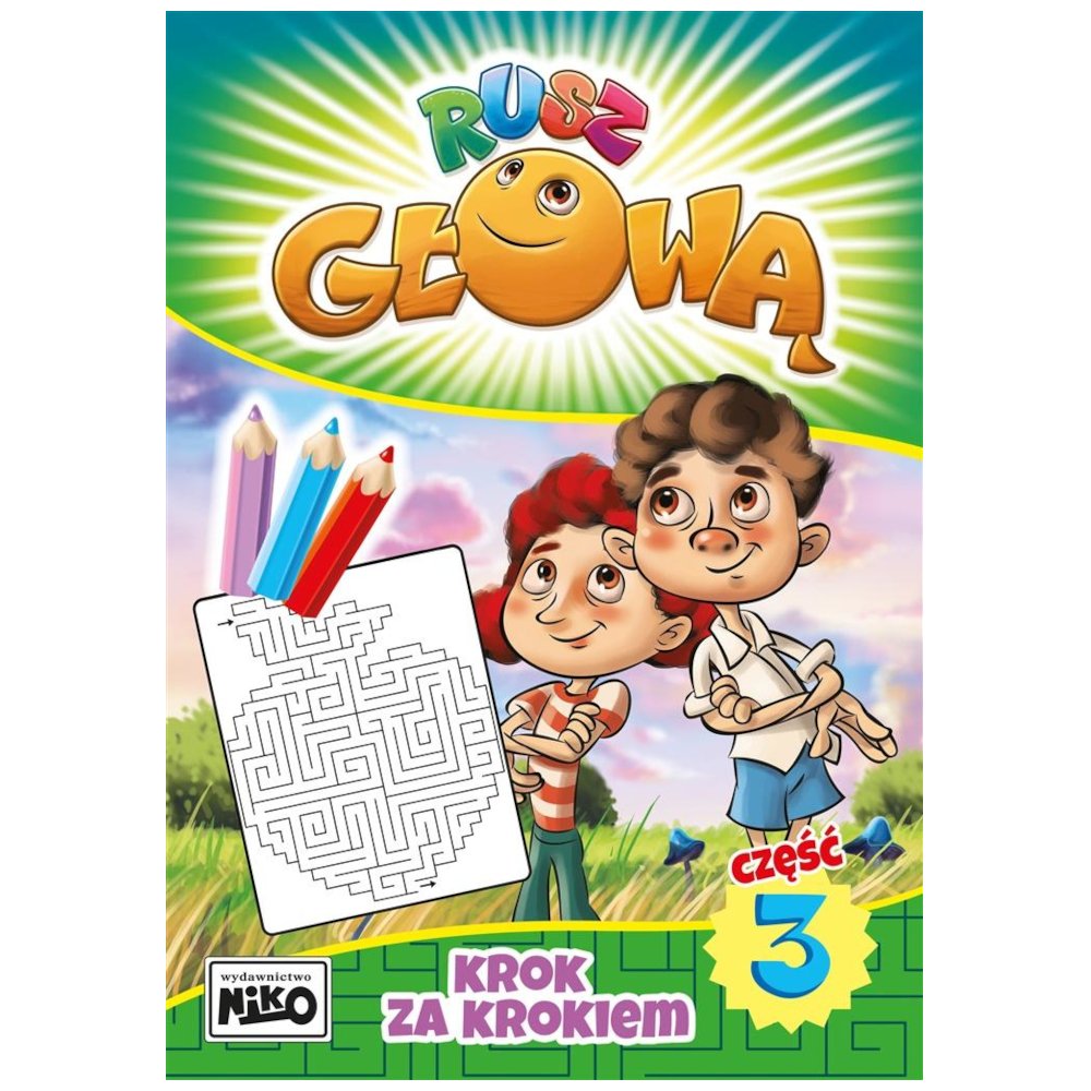 Seria RUSZ GŁOWĄ to propozycja zabaw logicznych, poprawiających koncentrację, cierpliwość i ćwiczących pamięć – dzięki temu dzieci będą mogły łatwiej i efektywniej się uczyć. Zadania różnią się skalą trudności zaczynają się od najprostszych i kończą trudniejszymi. Na serię składają się trzy części: Kropka do kropki (łączenie po kolei kropek i tworzenie w ten sposób obrazków), Kolor do koloru (kolorowanie obrazków na podstawie kodu) i Krok za krokiem (labirynty). Zapraszamy do zabawy!