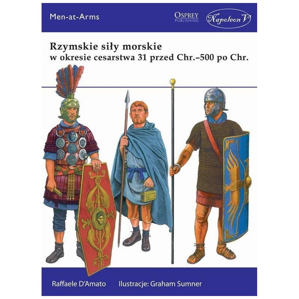 Legiony, które wywalczyły, a potem broniły cesarstwa rzymskiego były uzależnione od siły floty i waleczności marynarzy oraz zaokrętowanych żołnierzy. Ta fascynująca historia, obejmująca pod względem chronologicznym rzymską marynarkę od bitwy stoczonej pod Akcjum po upadek cesarstwa zachodniego, zawiera informacje na temat okrętów, uzbrojenia, odzieży, a także organizacji żeglarzy i żołnierzy piechoty morskiej. Do jej stworzenia wykorzystano mozaiki, rzeźby i znaleziska archeologiczne, zaś kolorowe plansze oferują szczegółowe rekonstrukcje postaci odbywających służbę w rzymskiej marynarce, od głównodowodzących i oficerów, po marynarzy i piechotę morską.