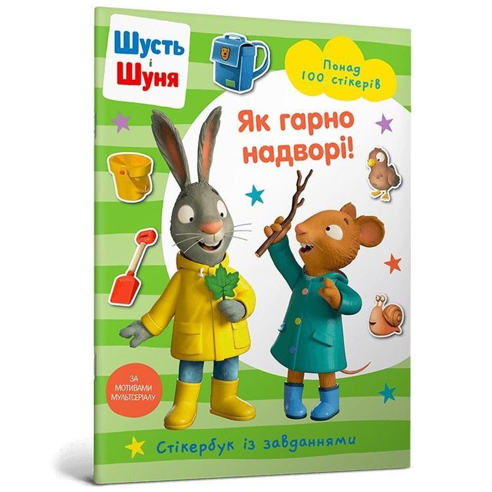 Książka z naklejkami z zadaniami opartymi na serialu animowanym o Shustyi i Shunyi! Shust i Shunya uwielbiają bawić się na dworze. Dlaczego do nich nie dołączysz? Wymyśl własną misję, stwórz tęczę z naklejek, narysuj słonecznik i dowiedz się wszystkiego o zabawie na świeżym powietrzu – dzięki tej wspaniałej książeczce z naklejkami i ciekawymi zajęciami! Dlaczego warto kupić: Książeczka z naklejkami z ulubieńcami dzieci – Shust i Shuna! Książeczka zawiera ponad 20 różnych zadań – dziecko będzie kleiło naklejki, malowało, grało w bingo, przechodziło przez labirynt, szukało skarbów i wiele więcej! Interesujący fakt: Shust i Shunya to bohaterowie całej serii bestsellerów. W Anglii nazywają się Pip i Posy. Seria zawiera nie tylko opowiadania, ale także książeczkę z zadaniami "Znajdź i nazwij".