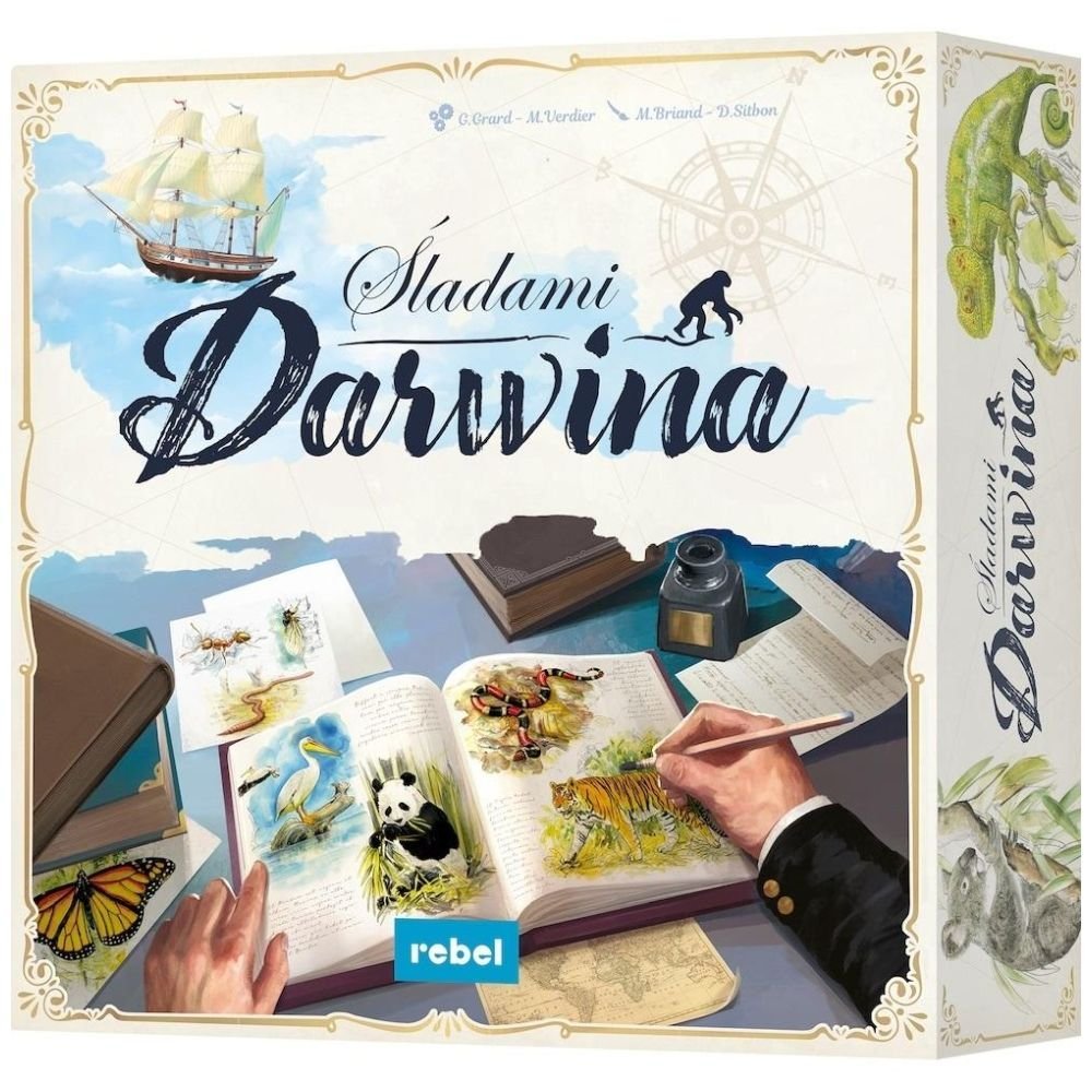 Śladami Darwina to prosta i przyjemna gra rodzinna oparta o zbieranie zestawów kafelków. Podczas zabawy wcielacie się w młodych przyrodników, którzy właśnie weszli na pokład okrętu Beagle. Wyruszacie na wyprawę, w trakcie której będziecie badać różne gatunki zwierząt, eksplorować teren i sporządzać mapy, publikować swoje odkrycia i formułować teorie. Każdy dąży do tego, aby zdobyć więcej punktów zwycięstwa niż rywale, czyli mieć największy wkład w powstanie dzieła Darwina!