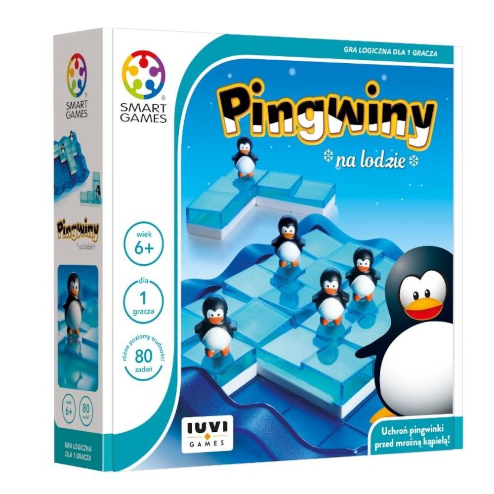 W “Pingwinach na Lodzie” – “mroźnej” grze logicznej, dziecko korzystając z dużych i ładnych elementów, zmierzy się z 80 zróżnicowanymi zadaniami. Zasada jest prosta – umieść elementy lodowej układanki na planszy tak, by każdy pingwin znalazł się w odpowiednim miejscu! Mały gracz poprzez zabawę trenuje nieszablonowe podejście do problemu i koncentrację.