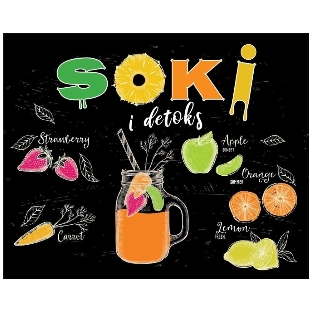 Książka zawiera 30 przepisów na soki: pobudzające metabolizm, upiększające, oczyszczające: detoks, pozbycie się toksyn oraz energetyzujące. Picie świeżych soków z doborem odpowiednich składników sprawia, że czujemy się dobrze, mamy dużo energii i nie boimy się o zbędne kilogramy.