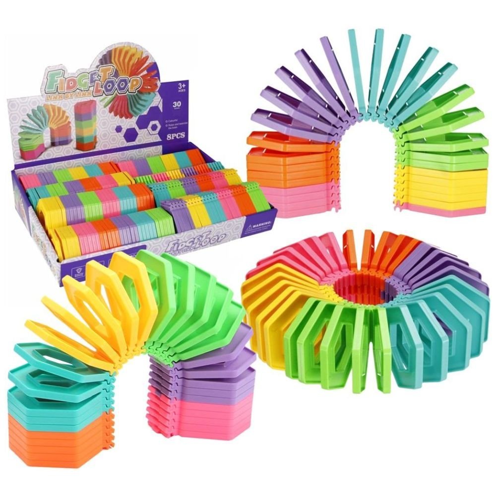 Sprężyna ćwiczy koordynację wzrokowo-ruchową zapewniając przy tym mnóstwo zabawy. Ta tęczowa wersja umożliwia łączenia nie tylko jej końców ale również kilku sztuk ze sobą.