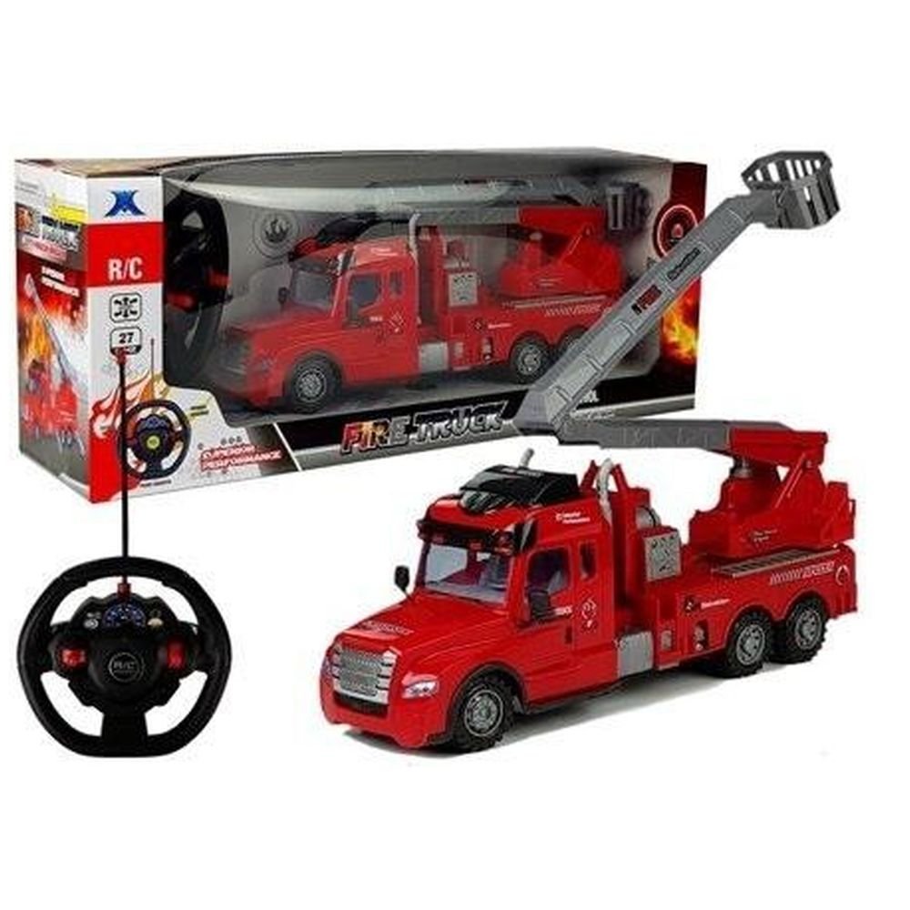 Zdalnie sterowany wóz strażacki z drabiną Jesteśmy przekonani, że niemal każdy kilkuletni chłopiec marzył o tym, by w przyszłości móc zostać dzielnym strażakiem i gasić płomienie – zabawka ta będzie spełnieniem marzeń! Zdalnie sterowany wóz strażacki sprawi, że maluch bez najmniejszej przeszkody wczuje się w tę rolę.