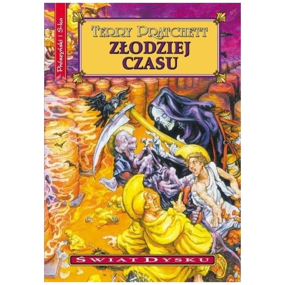 Czas jest zasobem – wszyscy wiedzą, że trzeba nim gospodarować. Na Dysku zadanie to przypada Mnichom Historii, którzy magazynują go i przepompowują z miejsc, gdzie się marnuje (na przykład spod wody – ile czasu potrzebuje dorsz), do miast, gdzie nigdy nie ma dość czasu. Ale konstrukcja pierwszego na świecie naprawdę dokładnego zegara staje się dla Lu-Tze i jego ucznia Lobsanga Ludda początkiem wyścigu… no, z czasem. Ponieważ ten zegar zatrzyma czas. A to będzie dopiero początkiem kłopotów. Złodziej czasu prezentuje także pełen komplet postaci drugoplanowych – bohaterów i złoczyńców, yetich, mistrzów sztuk walki oraz Ronniego, piątego Jeźdźca Apokalipsy (który odszedł, zanim stali się sławni)