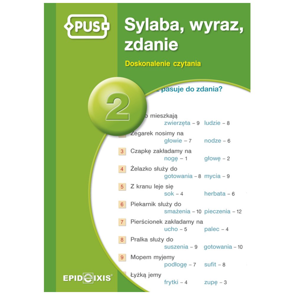 Sylaba, wyraz, zdanie 2 to druga część najnowszej serii książeczek PUS – ich celem jest doskonalenie u dzieci umiejętności samodzielnego, płynnego czytania. Seria składa się z trzech części i przeznaczona jest dla dzieci, które rozpoczęły już naukę czytania i opanowały jej podstawy, ale nie na tyle, by samodzielnie czytać dłuższe teksty. Może być przydatna także w terapii pedagogicznej, jak również w pracy z dziećmi, które z różnych przyczyn mają z czytaniem problemy.