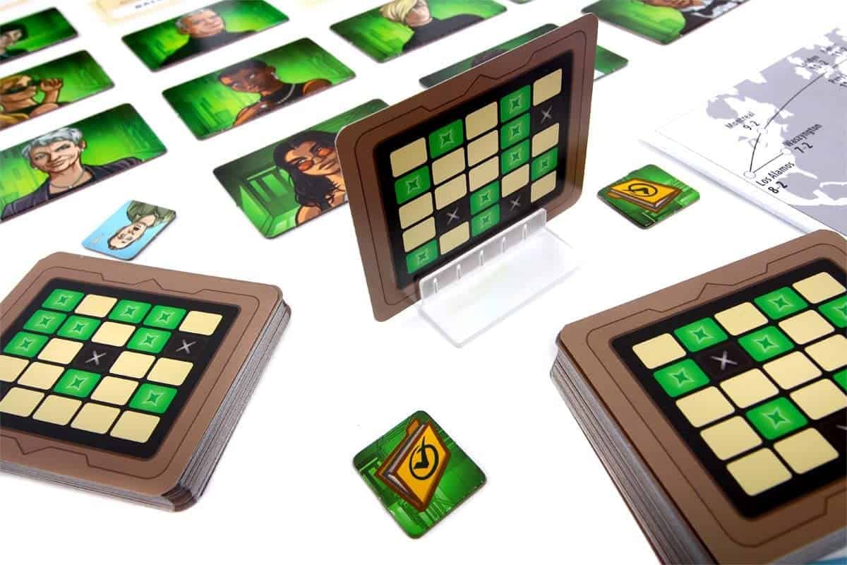Pudełko jest wypełnione po brzegi różnymi elementami. Pierwszą składową całości jest 15 zielonych kart agentów. Drugim ważnym i niezbędnym w rozgrywce elementem jest 100 dwustronnych kart kluczy, dzięki którym będziemy mogli wraz z partnerem wskazywać naszych agentów. Trzecim i chyba najważniejszym elementem jest 200 dwustronnych kart, które zawierają równo 400 słów. Większość z nich jest wieloznaczna, dzięki czemu łatwiej będzie wam połączyć ze sobą określone na karcie klucza karty. Dzięki specjalnemu projektowi kart, osoba siedząca na przeciwko nas widzi słowa tak samo dobrze jak my.