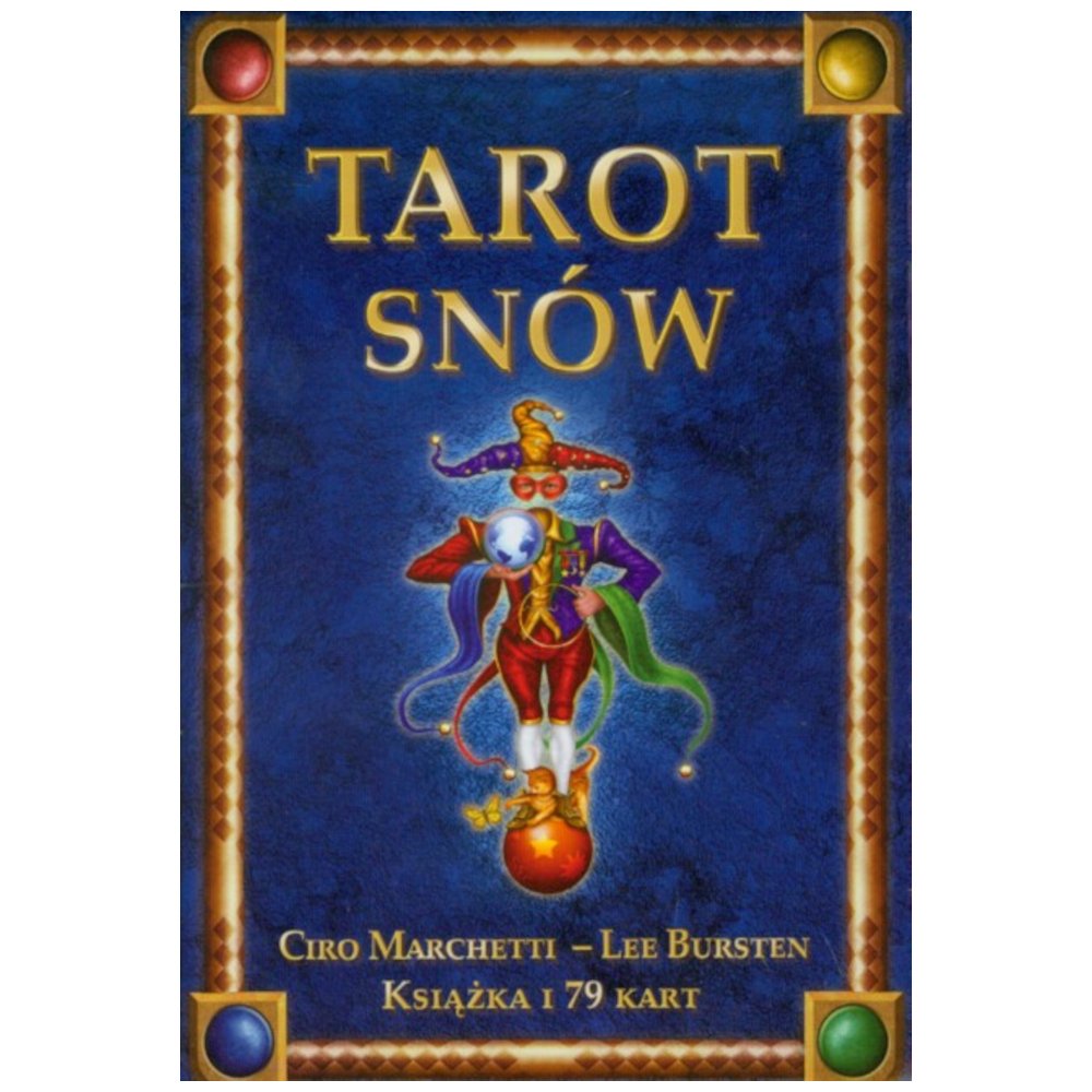 Witamy w świecie snów -Tarot, który masz przed sobą, jest niczym echo, wspomnienie snów zbiorowych z czasów, gdy znaczenie snów było o wiele większe niż dziś. Karty Tarota Snów przypominają nam o baśniach, mitach, legendach, fikcyjnych i historycznych postaciach, miejscach i przedmiotach, które pozostają w świadomości całej ludzkości. Zatem chcąc uzyskać świeże spojrzenie, musimy odwołać się do snów i do Tarota. Ze względu na swą uniwersalność, Tarot Snów jest idealny zarówno dla początkujących, jak i jego zaawansowanych miłośników. Oprócz poznania swojego wnętrza, dzięki Tarotowi można udzielać porad innym osobom, pomagając im w poznaniu samych siebie i manifestowaniu ich pragnień. Znaczenie poszczególnych kart zostało tu przedstawione w niezwykłej formie.