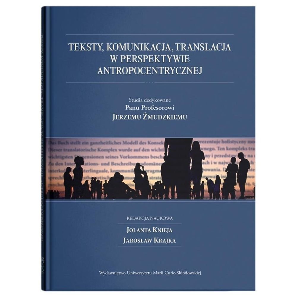 Tytuł tomu nawiązuje do zainteresowań naukowych Pana Profesora Doktora Habilitowanego Jerzego Żmudzkiego, pokazując zakres Jego wiedzy, pasji i działalności badawczej. Bowiem teksty i komunikacja oraz jej szczególny rodzaj, czyli translacja znajdują się w centrum problematyki dociekań i badań tego wybitnego badacza. Zainteresowania te osadzone są w antropocentrycznym paradygmacie współczesnych rozważań naukowych w obszarze lingwistyki, tak więc nigdy nie są oderwane od interpretowania rzeczywistości językowej poprzez pryzmat człowieka: czy to w sferze zagadnień dotyczących modelowania rzeczywistości translacyjnej czy w kręgu problematyki dydaktyki translacji czy lingwistyki tekstu i dyskursu, zagadnień transcendencji w językowej i translacyjnej komunikacji międzyludzkiej czy też językowo-kulturowego obrazowania świata. I tym właśnie zagadnieniom poświęcony jest niniejszy zbiór studiów i rozpraw.