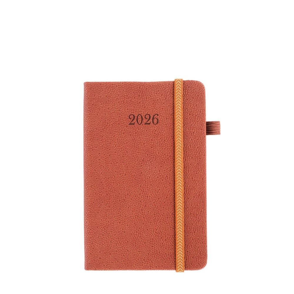 OKŁADKA: twarda, wzór imitacji skóry krokodyla, z gumką 6 mm i uchwytem na długopis, tłoczenie roku
