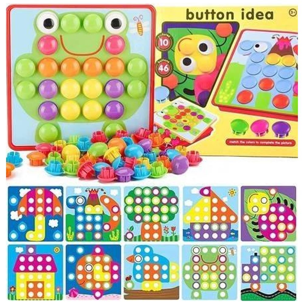 Wygodne przechowywanie: Zestaw zawiera praktyczne pudełko do przechowywania 45 kolorowych guzików i 12 różnych wymiennych plansz.