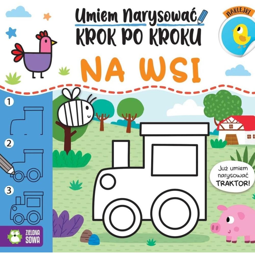 Z tą książeczką dziecko krok po kroku narysuje pojazdy i zwierzęta, które można spotkać na wsi – łatwo, prosto i z uśmiechem na twarzy! Przejrzyste instrukcje pomogą tworzyć kreska po kresce, kształt po kształcie, a przyjazne wzory sprawią, że rysowanie stanie się świetną zabawą.