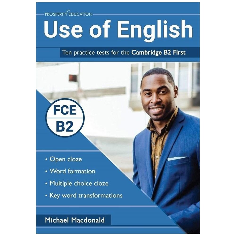 Publikacja Use of English: Ten practice tests for the Cambridge B2 First zawiera 10 testów z zakresu Use of English opracowanych tak, by wiernie odwzorowywały oficjalne arkusze egzaminu B2 First (FCE). W testach wykorzystano 40 oryginalnych tekstów, a łączna liczba pojedynczych, podlegających ocenie jednostek zadaniowych wynosi 300. Książka jest obszernym zbiorem wysokiej jakości materiałów ćwiczeniowych, bardzo pomocnych w przygotowaniu się do egzaminu.