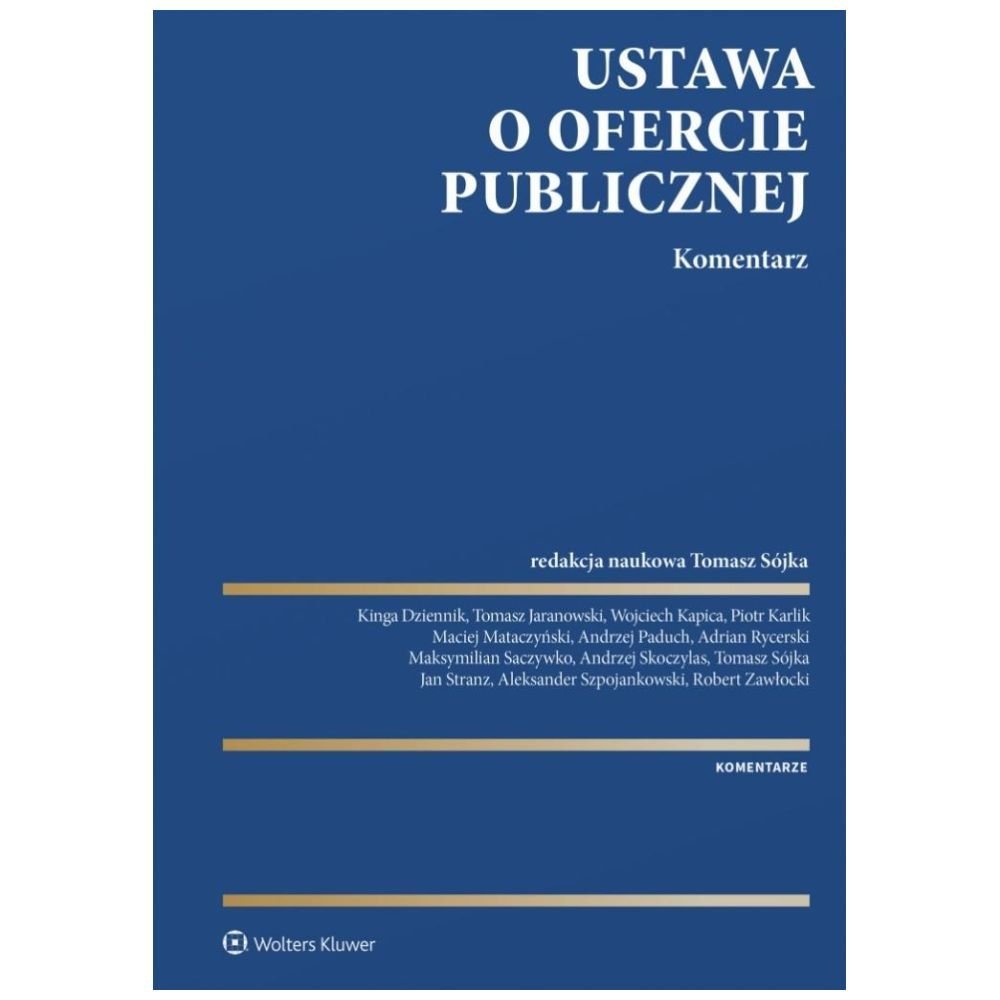 Komentarz stanowi praktyczne omówienie przepisów ustawy o ofercie publicznej i warunkach wprowadzania instrumentów finansowych do zorganizowanego systemu obrotu oraz o spółkach publicznych, która jest jedną z najważniejszych regulacji rynku kapitałowego. W książce uwzględniono ostatnie zmiany dokonane zarówno w prawie polskim, jak i unijnym, które wpłynęły na polski porządek prawny, w tym mające kluczowe znaczenie rozporządzenie Parlamentu Europejskiego i Rady (UE) 596/2014 w sprawie nadużyć na rynku (rozporządzenie MAR) oraz rozporządzenie Parlamentu Europejskiego i Rady (UE)2017/1129 – tzw. rozporządzenie prospektowe. Rozpoczęcie stosowania tych dwóch aktów prawnych skutkowało potrzebą uchylenia albo znowelizowania znacznej części przepisów komentowanej ustawy, co spowodowało konieczność dogłębnej analizy ich konsekwencji na płaszczyźnie stosowania polskiego prawa. Opracowanie uwzględnia aktualny dorobek doktryny polskiej i zagranicznej, najnowsze orzecznictwo oraz praktykę organów nadzoru, w tym Komisji Nadzoru Finansowego i Europejskiego Urzędu Nadzoru Giełd i Papierów Wartościowych (ESMA), co czyni go praktycznym przewodnikiem dla wszystkich podmiotów związanych z rynkiem kapitałowym. Publikacja przeznaczona jest dla adwokatów, radców prawnych, sędziów oraz prawników zajmujących się rynkiem kapitałowym. Będzie pomocna również pracownikom funduszy inwestycyjnych, domów maklerskich i banków. Zainteresuje też brokerów, emitentów papierów wartościowych, pracowników spółek giełdowych, a także przedstawicieli nauki zajmujących się prawem rynku kapitałowego.