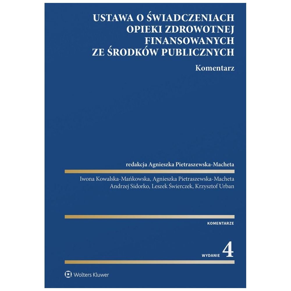 Publikacja w sposób przystępny omawia najważniejszą ustawę określającą zasady funkcjonowania systemu opieki zdrowotnej w Polsce. Książę opracowali prawnicy praktycy, w tym również pracujący od wielu lat w Narodowym Funduszu Zdrowia, na co dzień stykający się z problemami finansowania świadczeń ze środków publicznych. W czwartym wydaniu omówiono ostatnie zmiany w systemie ochrony zdrowia, w tym m.in.: – nowe zasady dotyczące centralizacji procesu kontroli w zarządzaniu Narodowym Funduszem Zdrowia; – utworzenia Funduszu Medycznego w celu finansowania świadczeń opieki zdrowotnej; – zmiany w organizacji Narodowego Funduszu Zdrowia dotyczące modyfikacji systemu opracowania i wdrażania map potrzeb zdrowotnych oraz odnoszące się do systemu finansowania świadczeń opieki zdrowotnej. Oprócz przedstawienia poglądów, zaprezentowano praktyczne rozwiązania dotyczące zastosowania przepisów komentowanej ustawy w praktyce, jak również bogaty wybór literatury i orzecznictwa sądów powszechnych i administracyjnych. Książka jest przeznaczona dla pracowników oraz właścicieli podmiotów leczniczych publicznych i niepublicznych. Ponadto może stanowić cenną lekturę dla pracowników Narodowego Funduszu Zdrowia. Zainteresuje również sędziów, radców prawnych i adwokatów.