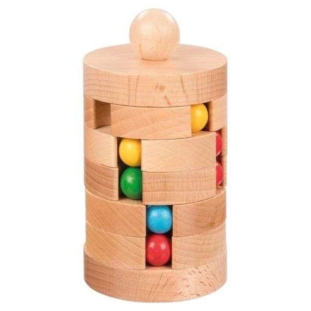Drewniana gra logiczna Goki pozwala dziecku obracać jej częściami tak długo, aż uda się połączyć wszystkie elementy w tym samym kolorze.