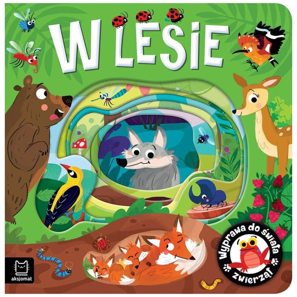 Zapraszamy na wyprawę do świata zwierząt – spotkacie tu mieszkańców lasu. Ta przestrzenna książeczka zachwyci małych miłośników zwierząt. Wejdź do leśnego świata i sprawdź, jakie zwierzaki się tu kryją. Czekają tu na ciebie: wilga, sójka i mrówki, żuki i ślimaki, rodzina dzików, wilki, nietoperze, bobry, sarna, łoś i wiele innych zwierzaków. Otwory pozwalają patrzeć na zwierzęta ukryte na dalszych lub wcześniejszych stronach. Zabawnie wyglądają wystające oczy lub dzioby – można zgadywać, do jakich zwierzątek należą. Zabawne wierszyki o bohaterach książeczki utrwalają wiedzę o zwierzętach, wzbogacają słownictwo dziecka i jego pamięć. Dotykaj, szukaj, oglądaj! I zostań znawcą leśnych zwierząt! Z tą przestrzenną książeczką dziecko miło i owocnie spędzi czas! Zapraszamy do wspólnej zabawy!
