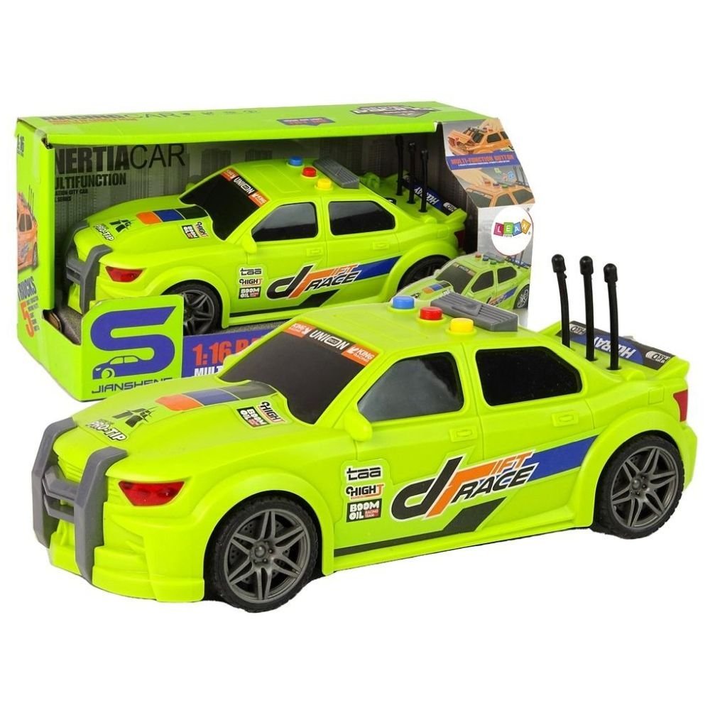 Auto Sportowe Wyścigowe 1:16 Zielony Dźwięk Jeśli twoje dziecko lubi muzykę a do tego sportowe auta, to właśnie mamy idealne połączenie. Sprawi mu to dużo frajdy i na pewno szybko nie znudzi. Zapraszamy do świata niezapomnianych przygód za kierownicą naszego niesamowitego samochodu na skalę 1:16, w zielonym kolorze, ozdobionego wyścigowymi naklejkami! Kiedy złapiesz ten miniaturkowy pojazd w ręce, poczujesz ekscytujący dreszczyk emocji, dzięki dźwiękowi odpalania silnika. Radosna i energiczna melodia sprawi, że Twoje serce zacznie bić w rytm muzyki. Odgłosy szybkiej jazdy przeniosą Cię w świat wyścigów.