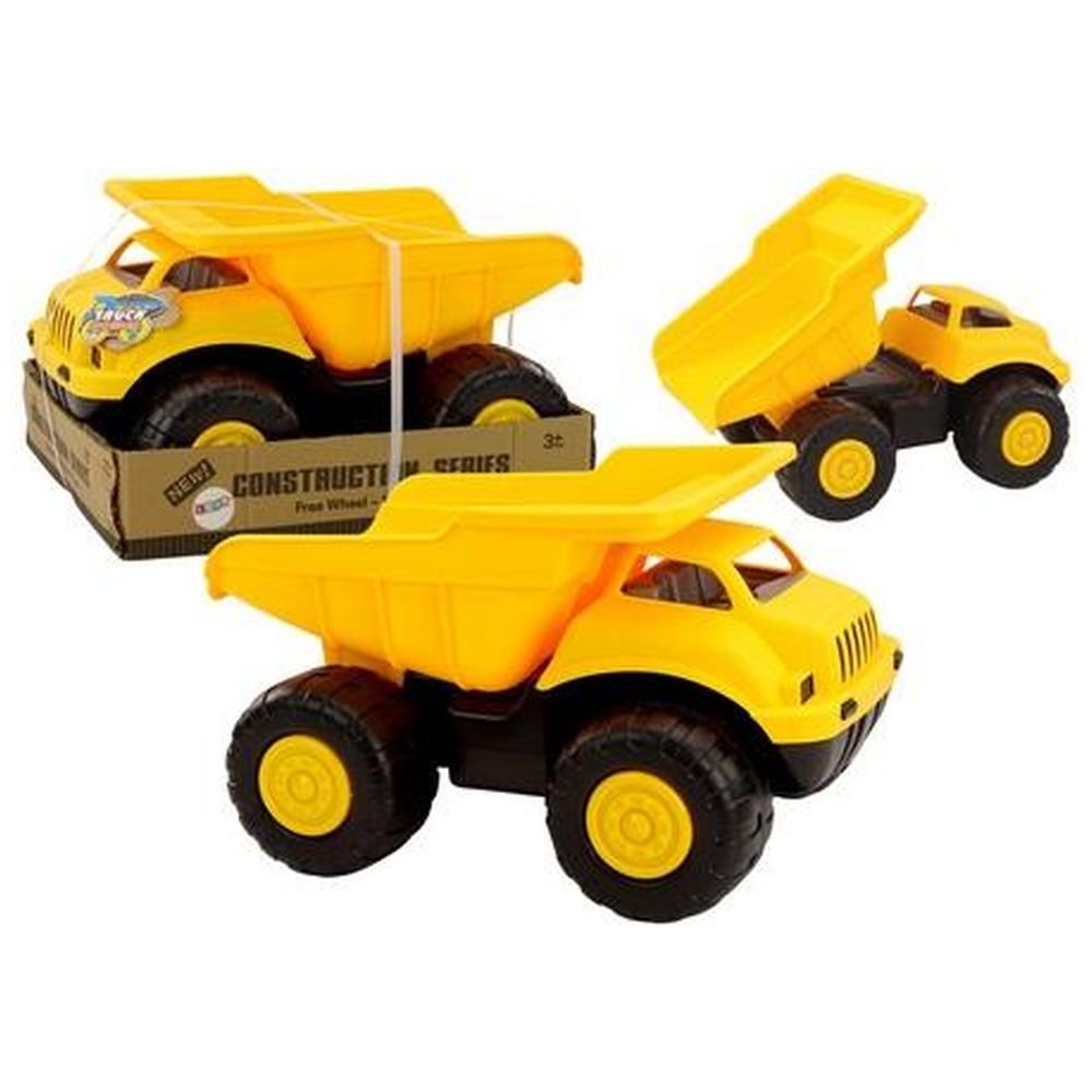 Wywrotka Żółta Pojazd Budowlany Ciężarówka Przyczepa Duże Auto Duża wywrotka dla dzieci to doskonała zabawka, która zapewni długie godziny kreatywnej i angażującej zabawy na świeżym powietrzu i w domu. Pojazd jest w kolorze żółtym, co przyciąga wzrok i dodaje mu realistycznego wyglądu. Wywrotka wyposażona jest w duże, czarne koła, które zapewniają stabilność i łatwość poruszania się po różnych powierzchniach, takich jak trawa, piasek czy dywan. Jednym z najważniejszych elementów tej zabawki jest przyczepa z możliwością odchylania. Dzięki temu dziecko może przewozić w niej różne przedmioty, takie jak zabawki, klocki czy nawet piasek. Funkcja odchylania ułatwia wyładunek, co z pewnością spodoba się małym budowniczym i zachęci do zabawy w konstrukcje i prace ziemne. Wywrotka jest duża, co sprawia, że zabawa nią jest jeszcze bardziej atrakcyjna. Dzieci mogą załadować na nią więcej rzeczy, co dodatkowo rozwija ich wyobraźnię i umiejętności manualne. Do wywrotki można przywiązać sznurek, co pozwala dziecku na ciągnięcie pojazdu za sobą. To dodatkowa opcja, która rozwija koordynację ruchową i sprawia, że zabawka staje się bardziej interaktywna. Ta duża wywrotka dla dzieci to nie tylko zabawka, ale i narzędzie do nauki poprzez zabawę, rozwijające zdolności motoryczne, koordynację oraz kreatywność dziecka. Idealnie nadaje się na prezent, który dostarczy wiele radości i niezapomnianych chwil każdemu maluchowi. Wymiary wywrotki: 53 cm x 41 cm x 34 cm Posiada certyfikat CE, ponadto jest zgodny z normą EN71. Przeznaczony dla dzieci od 3 roku życia.